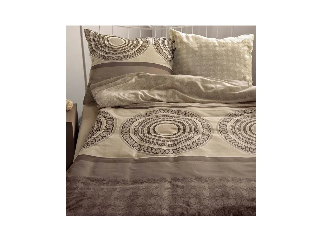 Piękny geometryczny wzór modnych kół połączony z nietuzinkowym zestawem kolorów w odcieniu beżu brązu to wyjście z monotonii oraz obiekt pożądania wszystkich ceniących luksus i elegancja w swojej sypialni.