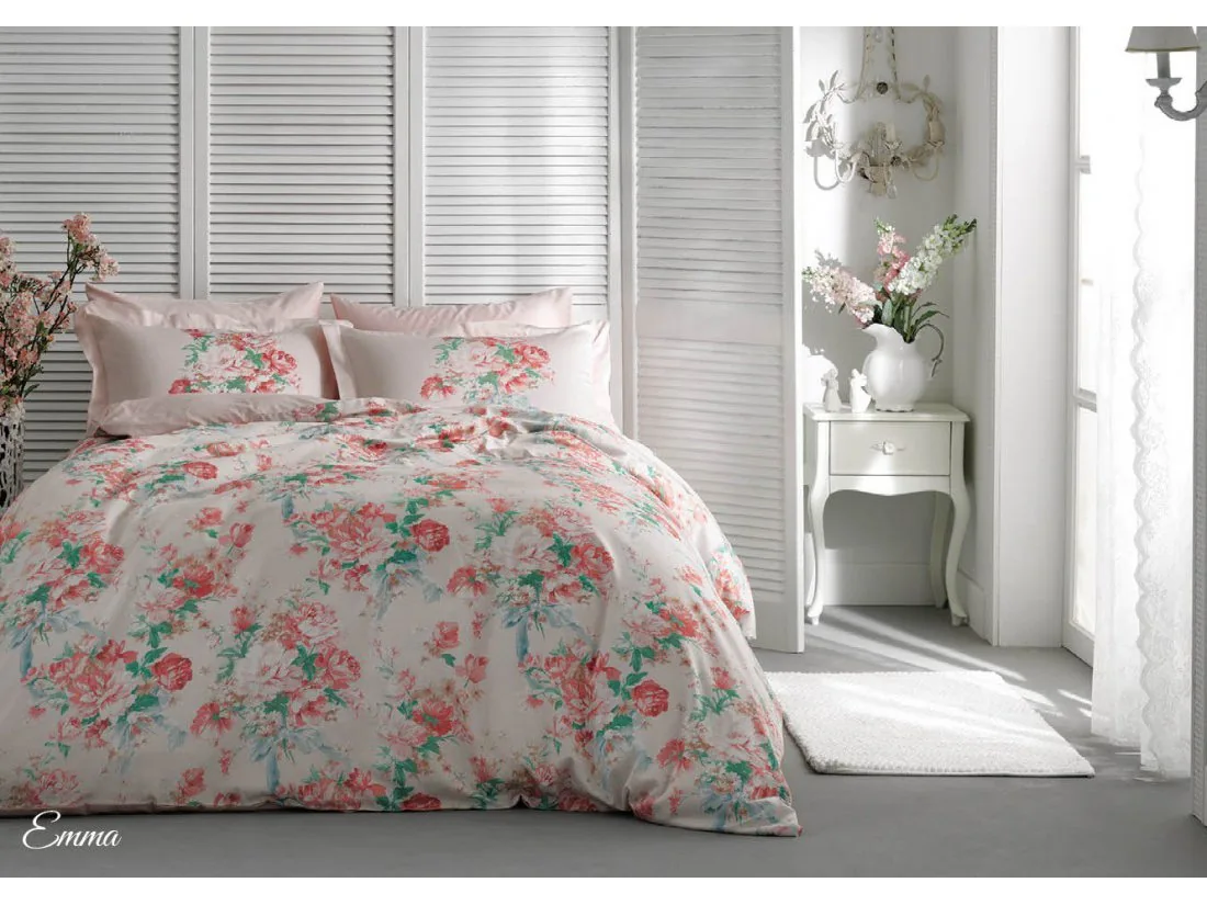 Elegancki 6 częściowy komplet pościel Emma został wykonany z najwyższej jakości 100 % bawełny o gęstym satynowym splocie jest miły i delikatny w dotyku. Bogate wzornictwo oraz różnorodność kolorów pozwoli dobrać komplet pościeli do każdej sypialni.