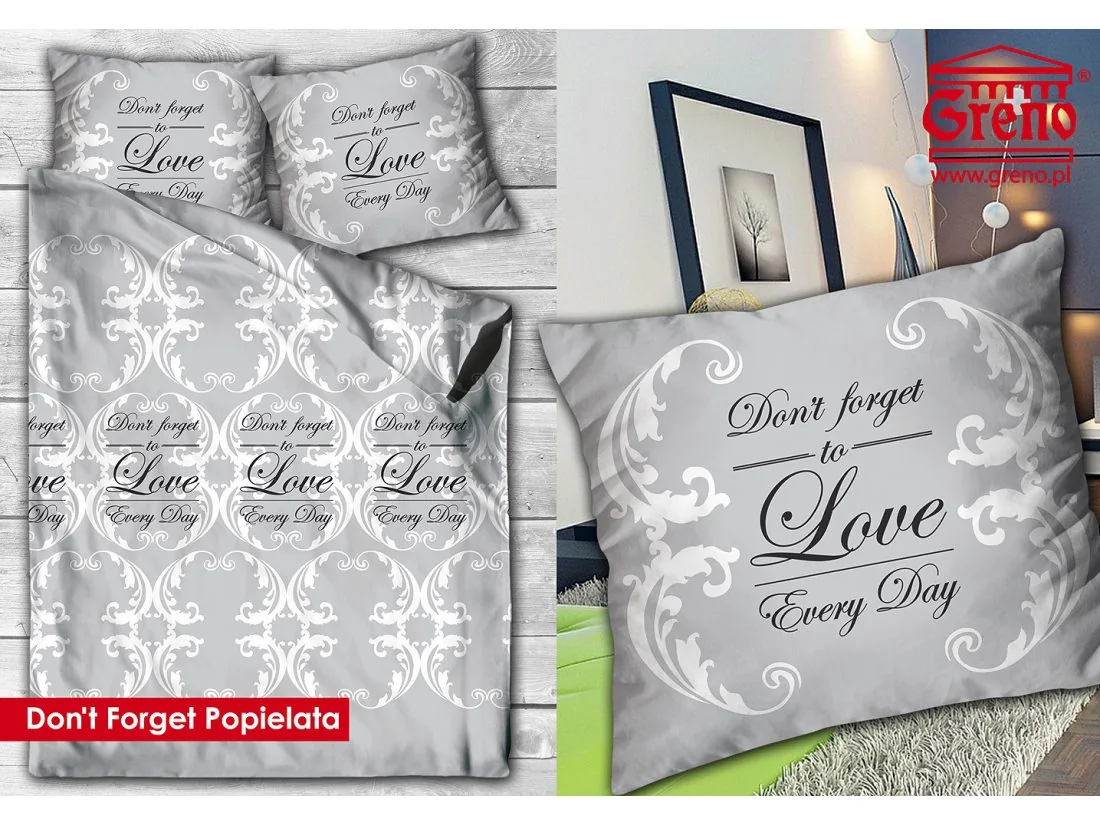 Kpl. pościeli satynowej Don't Forget Popielata 160x200 Gold Line Greno