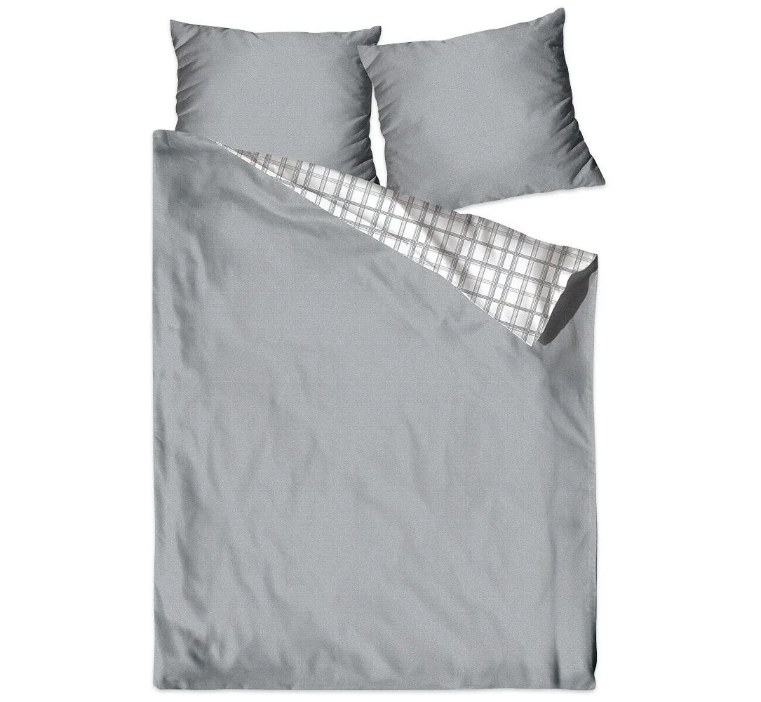Dodatkowym atutem pościeli jest dwustronność wzoru, co pozwala stworzyć idealny nastrój w sypialni w zależności od nastroju. Poszwa w rozmiarze 220x200 oraz 2x poszewka 70x80 z jednej strony delikatny deseń w szaro popielatym kolorze druga strona zawsze modna szara krateczka na białym tle.