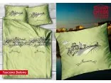 Fantazyjny wzór pościeli satynowej znakomicie wkomponowany w zielono seledynową kolorystykę intryguje oraz przyciąga wzrok.
