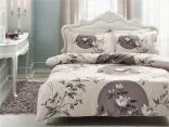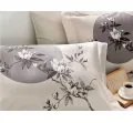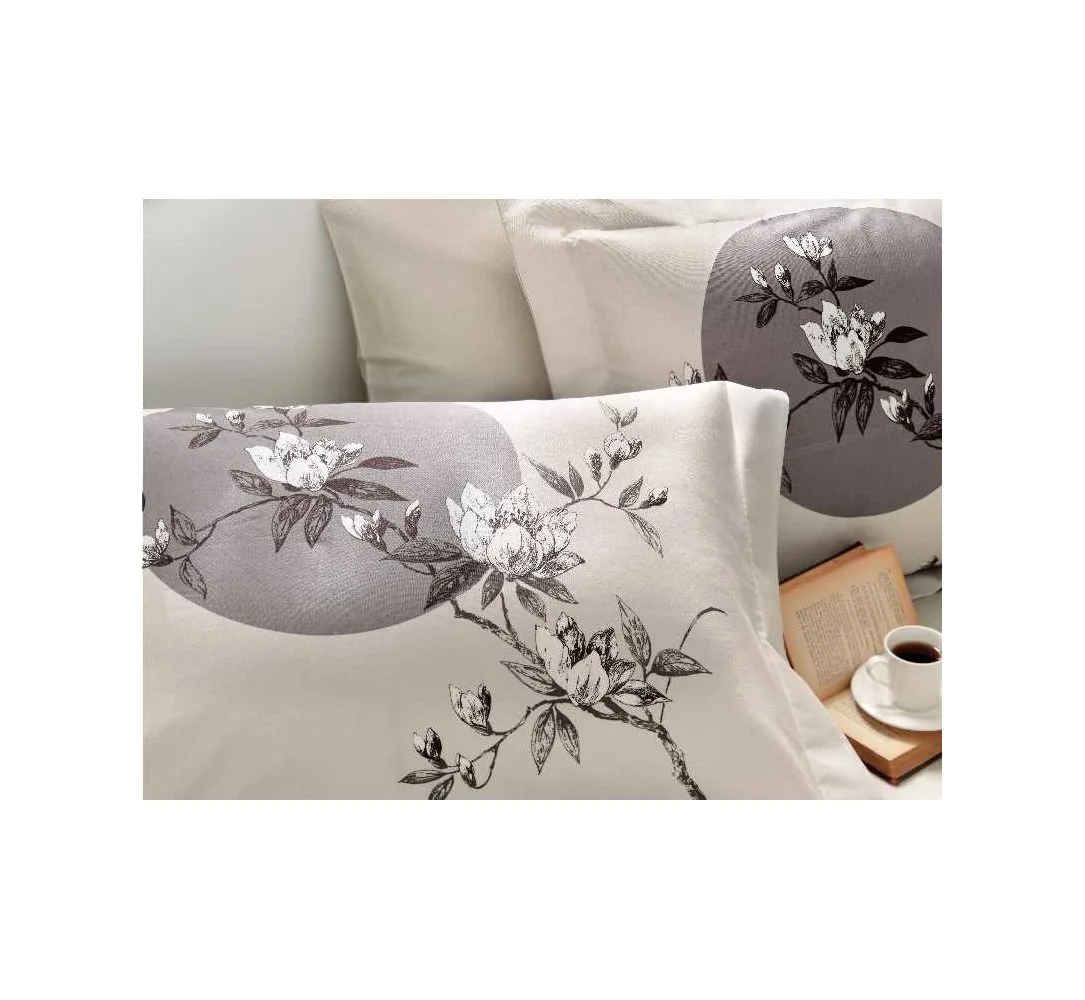 Subtelne połączenie barw w odcieniu szaro srebrnymoraz delikatnym nadrukiem na pościeli kwiatowego motywu tworzy piękną kompozycje, która przypadnie do gustu wszystkim którzy lubią kwiatowe wzory.