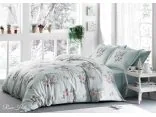 Subtelne połączenie barw w odcieniu turkusowo zielonymoraz delikatnym nadrukiem na pościeli kwiatowego motywu tworzy piękną kompozycje, która przypadnie do gustu wszystkim którzy lubią kwiatowe wzory.