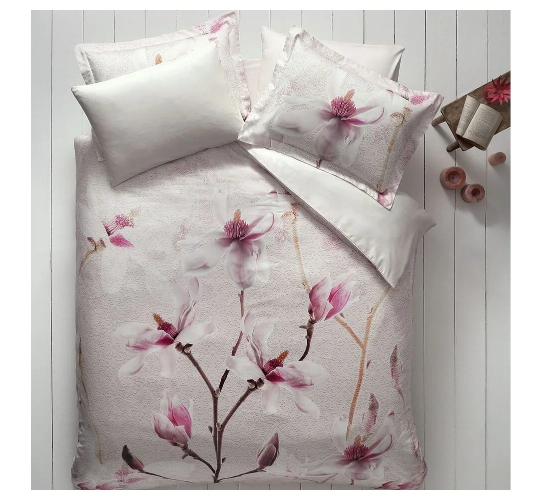 Subtelne połączenie barw w odcieniu jasnego różu,jasnego kremu jak również przyciągającym wzrok nadrukiem na pościeli romantycznego kwiatowego motywu tworzy piękną kompozycje, która przypadnie do gustu wszystkim romantykom którzy lubią kwiatowe wzory.