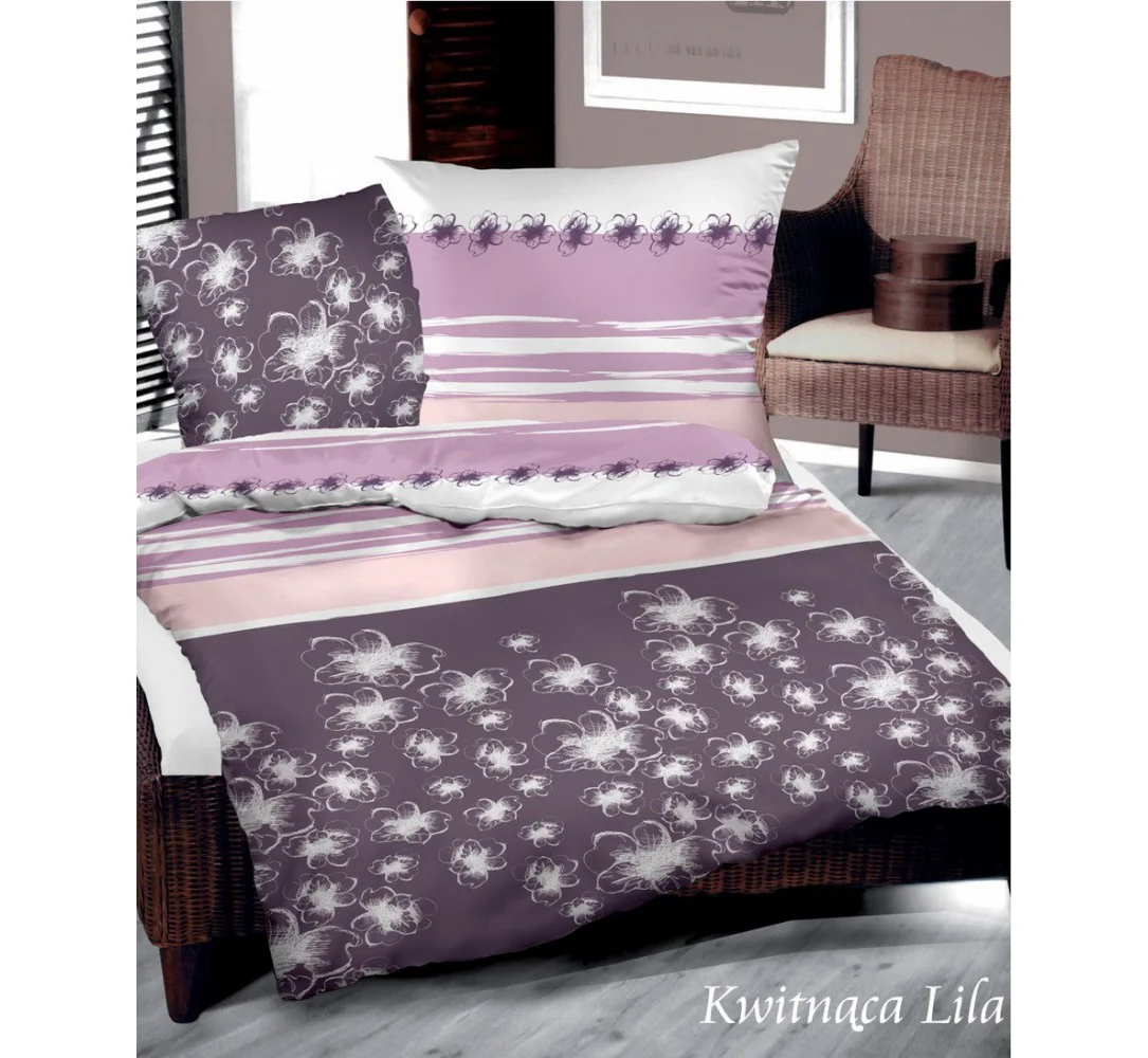 Pościeli z satyny bawełnianej model Kwitnąca Lila polskiej firmy Greno z kolekcji Gold Line to nowa propozycja pościeli satynowej.