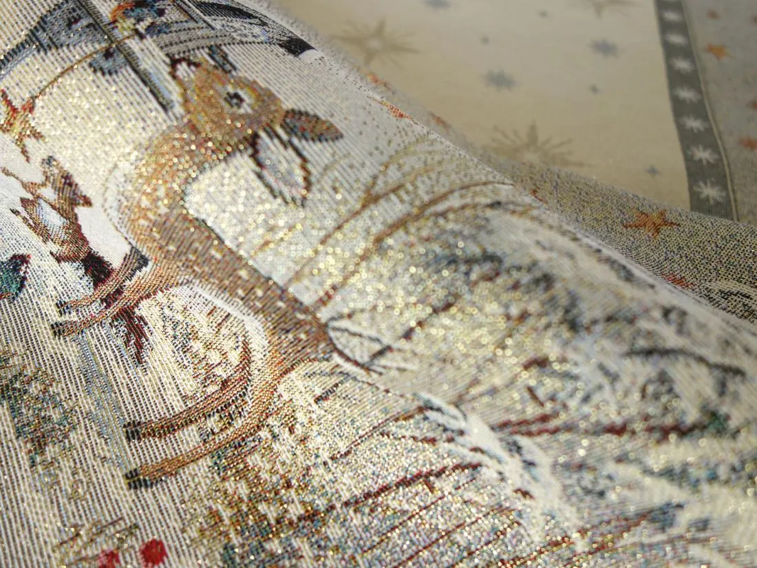 Bieżnik Gobelinowy Świąteczny Boże Narodzenie to wyjątkowy dodatek, który nada magicznego uroku każdemu wnętrzu w okresie świątecznym. Wykonany z hiszpańskiej tkaniny o składzie 25% bawełna, 70% poliester i 5% poliakryl, ten bieżnik charakteryzuje się wysoką jakością i trwałością. Tkanina jest tkana żakardowo, co nadaje jej wyjątkową fakturę i wzornictwo. Dodatkowym atutem poszewki jest srebrna nitka wpleciona w tkaninę gobelinową.Niezwykłe wzory użyte na tym bieżniku nawiązują do tradycji gobelinów, które kiedyś ozdabiały ściany w domach. Teraz możesz cieszyć się tymi pięknymi motywami na swoim stole lub komodzie. Bieżnik Gobelinowy Świąteczny Boże Narodzenie jest idealny do umieszczenia w salonie lub kuchni, gdzie jego obecność odmieni całe wnętrze i stworzy magiczną atmosferę.Tkanina jest gruba , co sprawia, że jest praktyczna i łatwa w utrzymaniu. Różnorodność wzorów na bieżnikach gobelinowych zaspokoi gust każdego, kto pragnie wprowadzić do swojego domu niepowtarzalny, magiczny, sielski klimat. To doskonałe rozwiązanie, aby odmienić wnętrze na czas świąt, dodając mu wyjątkowego charakteru.