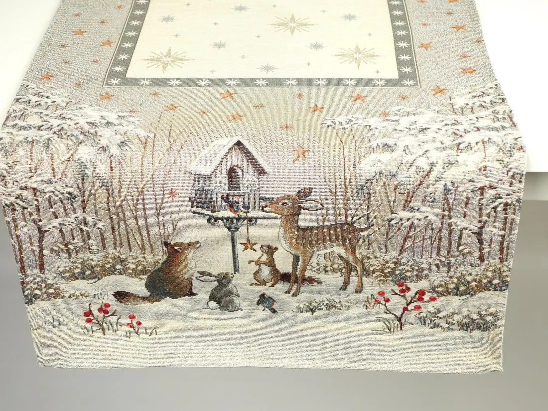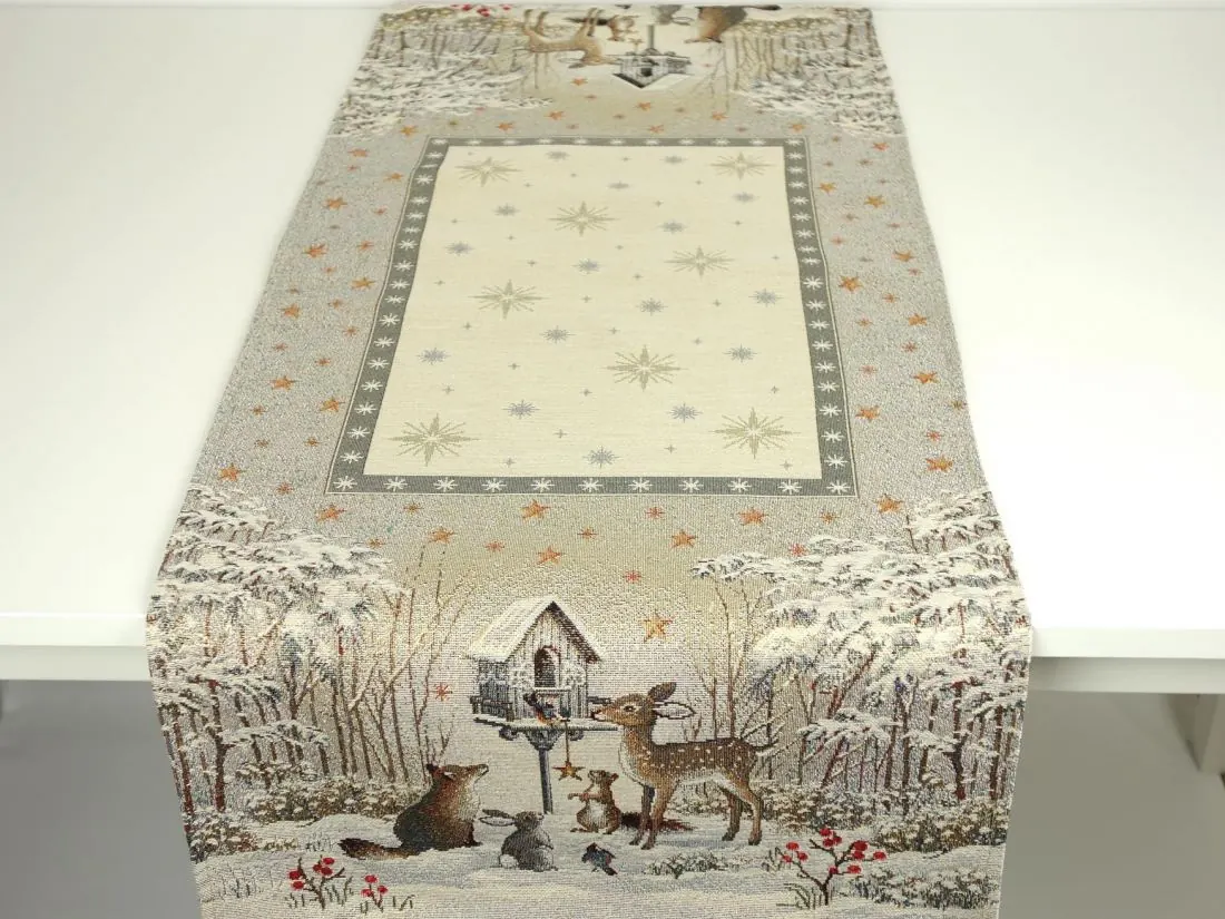 Bieżnik gobelinowy świąteczny 40x100 cm sarenka, lisek, zajączek wz 235 SlodkieSny