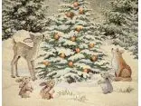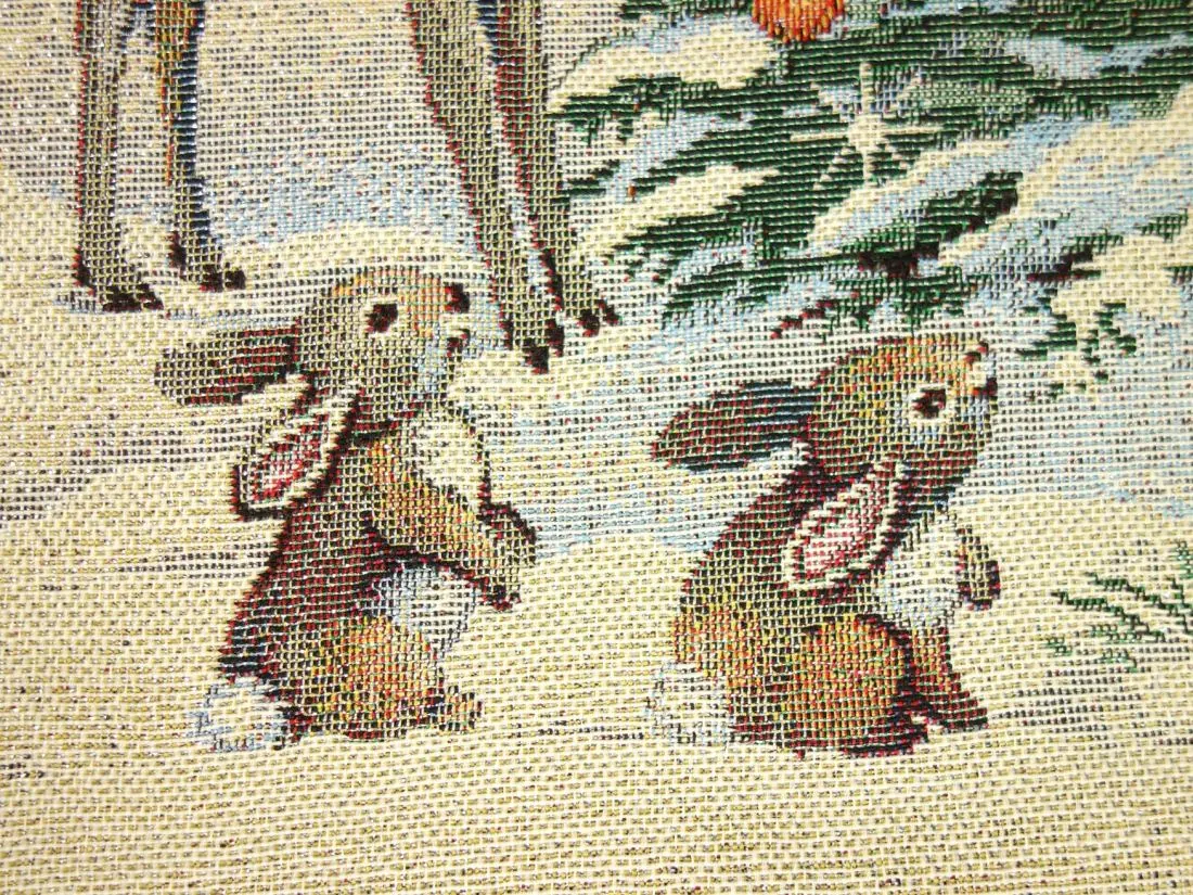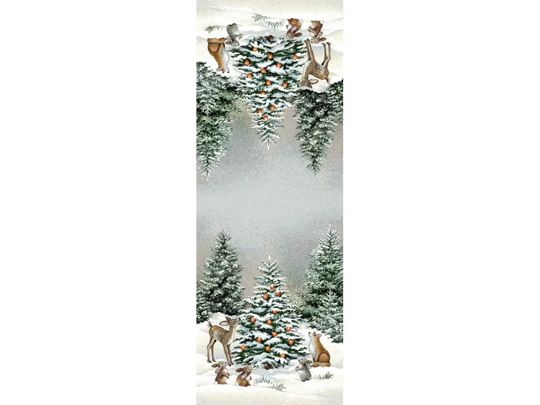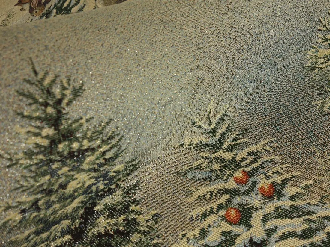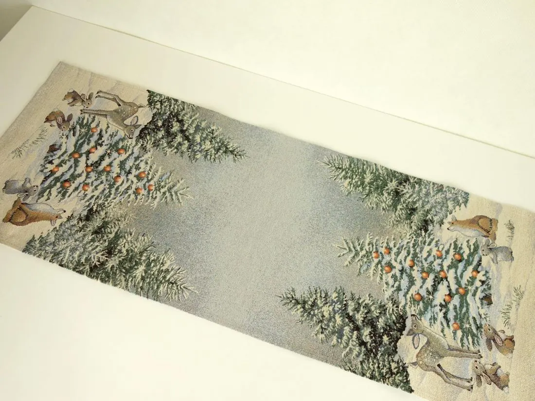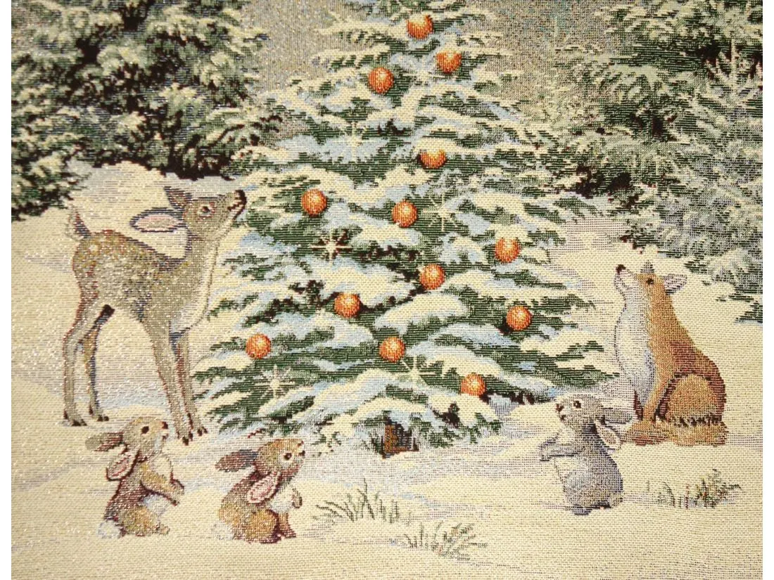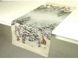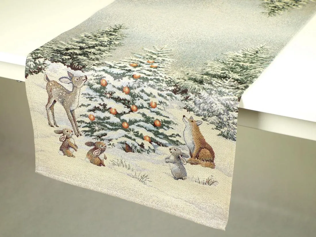 Bieżnik gobelinowy świąteczny 40x100 cm sarenki, zajączki zimą wz 299 SlodkieSny srebrna nitka