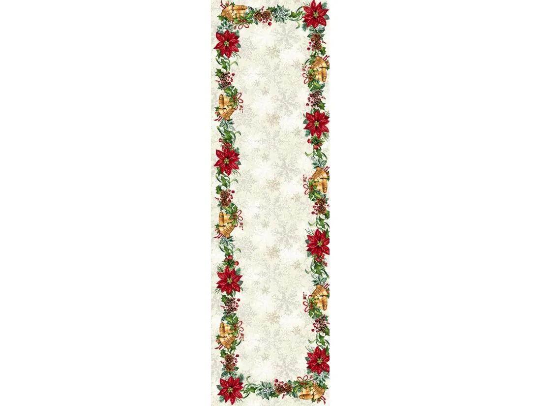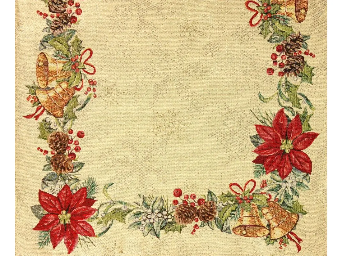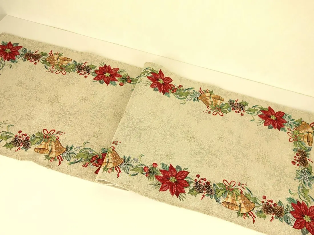 Bieżnik gobelinowy świąteczny 45x140 cm stroik, dzwoneczki wz 296 SlodkieSny srebrna nitka