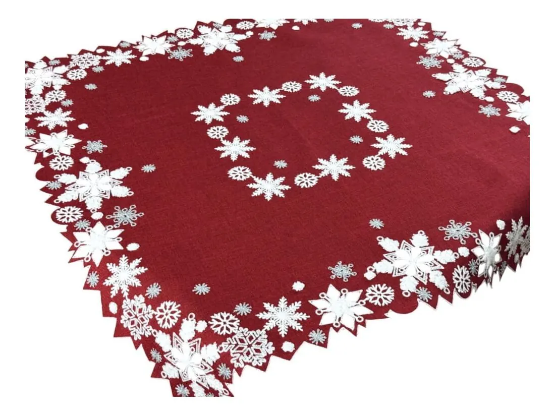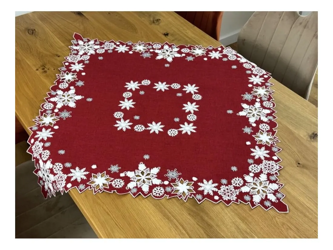 Bieżnik świąteczny białe śnieżynki 85x85 cm int 418 Boże Narodzenie 1 szt czerwona