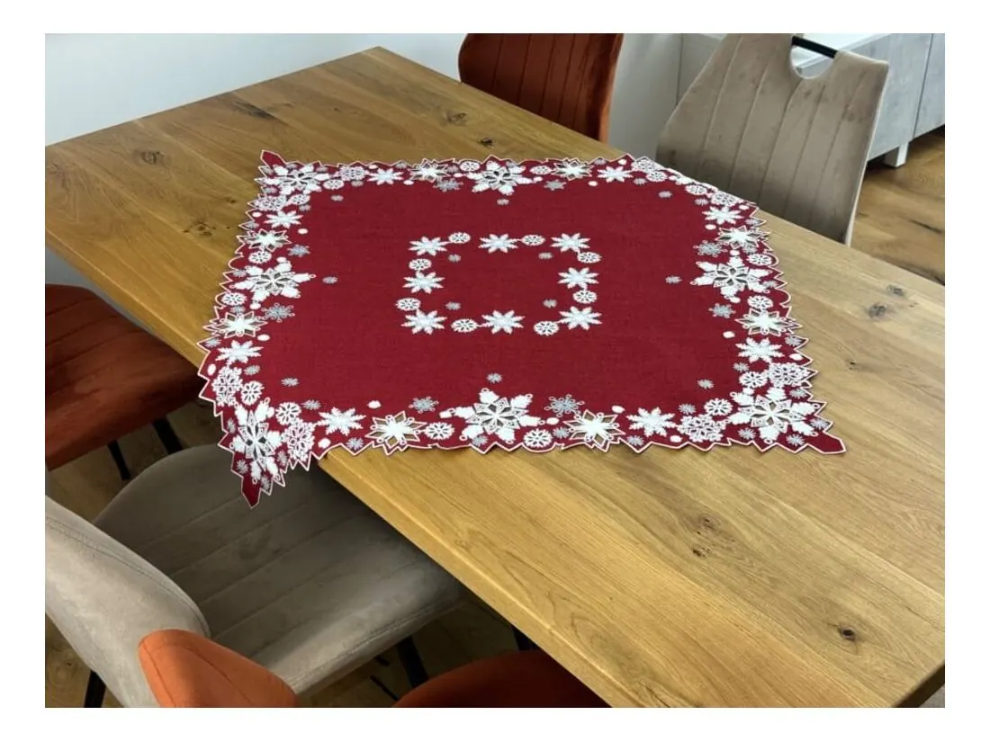 Wprowadź magię świąt do swojego domu dzięki temu eleganckiemu czerwonemu bieżnikowi o wymiarach 85x85 cm. Jej kwadratowy kształt i intensywny, czerwony odcień doskonale oddają ducha Bożego Narodzenia i stanowią klasyczny, ciepły akcent w zimowych aranżacjach.
