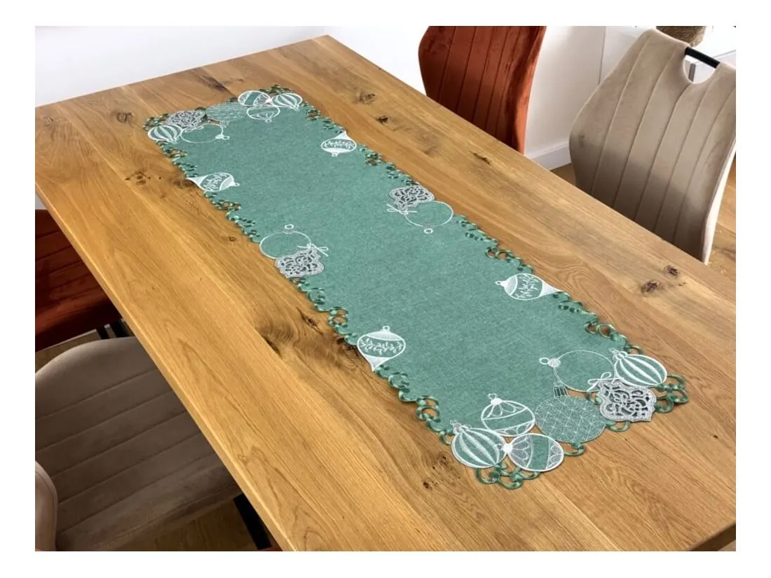 Bieżnik świąteczny srebrne bombki 40x140 cm int 0165 Boże Narodzenie 1 szt miętowy