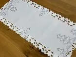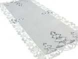 Wykończenie bieżnika to prawdziwe arcydzieło – ozdobny haft łańcuszkowy inspirowany zimową aurą dodaje mu uroku i dbałości o detale. Brzegi bieżnika zdobią starannie wykonane haftowane gwiazdki oraz choinki, które podkreślają zimowy i świąteczny klimat dekoracji.
