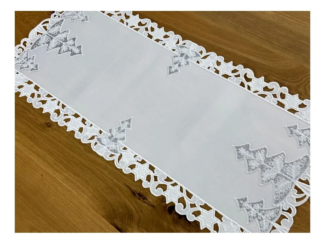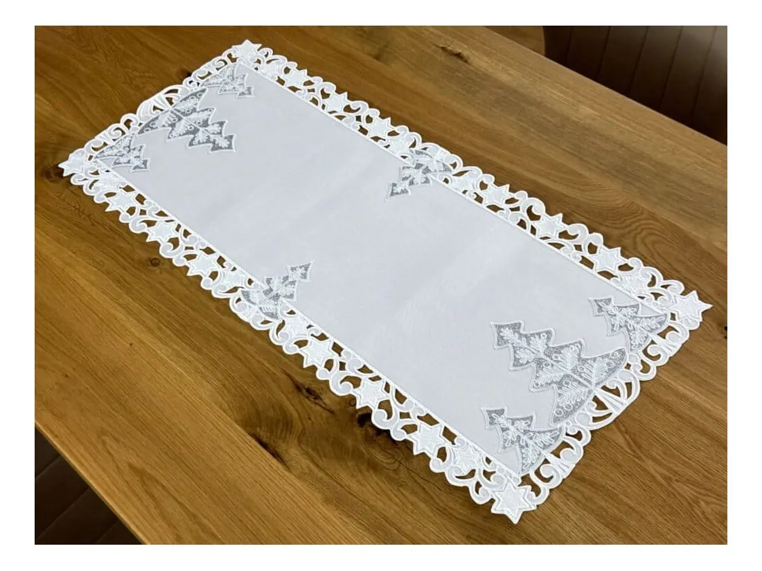 Bieżnik świąteczny srebrne choinki na białym tle 40x85 cm int 1343 Boże Narodzenie 1 szt biały