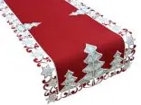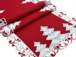Bieżnik świąteczny srebrne choinki na czerwonym tle 40x174 cm int 1343 Boże Narodzenie 1 szt czerwony