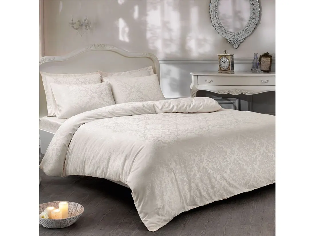 Pościel satynowa 6 elementowa w rozmiarze 200X220 cm z kolekcji Jacquard firmy TIVOLYO HOME, to ekskluzywna pościel dla każdego kto w swojej sypialni ceni luksus i elegancje. Szykowny 6 częściowy komplet pościel z kolekcji Jaquard został wykonany z miłej i delikatnej w dotyku satyny żakardowej o perfekcyjnej fakturze stworzona z myślą o komforcie i luksusie jak również symbolizującą elegancje w sypialni.
