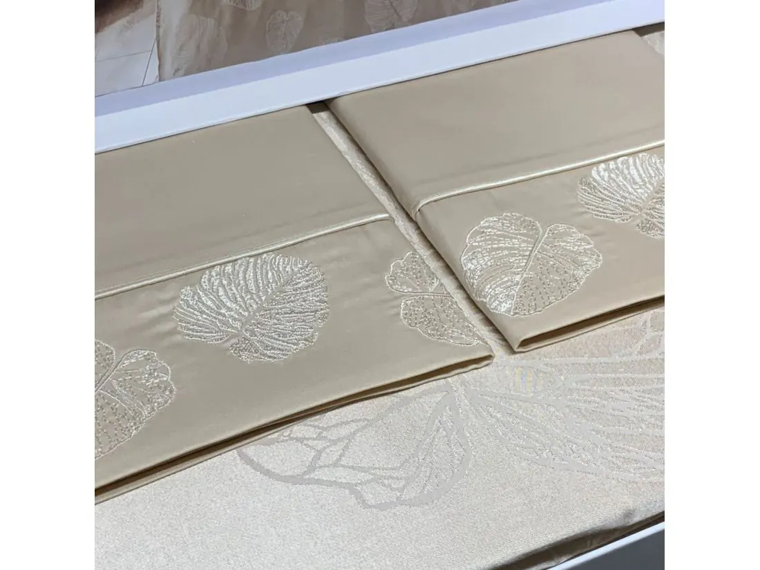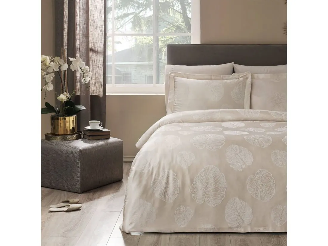 Ekskluzywna pościel żakardowa 200x220 Lidia Beige Tivolyo listki