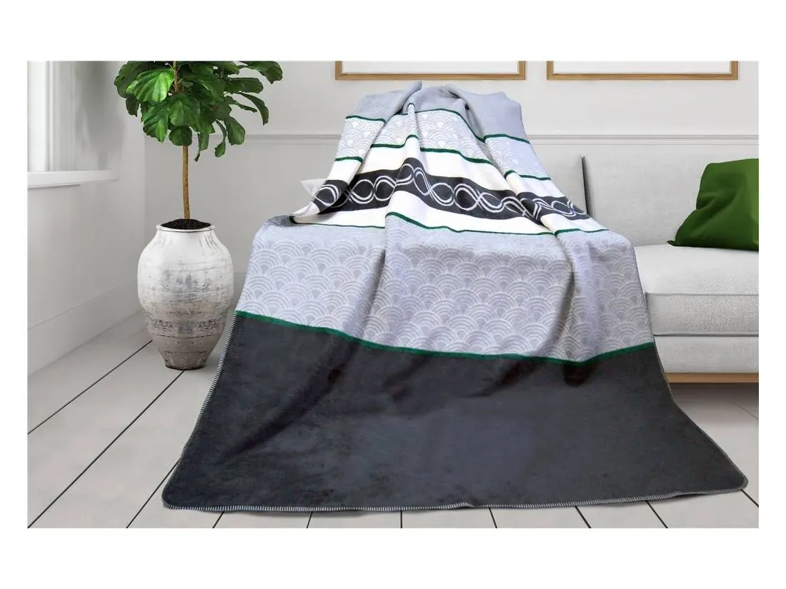 Ciepły koc w kolorze grafitowo popielatym w rozmiarze 150 x 200 cm firmy Greno z kolekcji Glamour, podkreśli oryginalność każdej sypialni.
