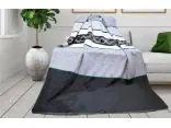 Delikatna kolorystyka szarości i bieli wraz z geometrycznym wzorem kropeczek zachwyci każdego kto otuli się ciepłem i aksamitnym dotykiem koca.