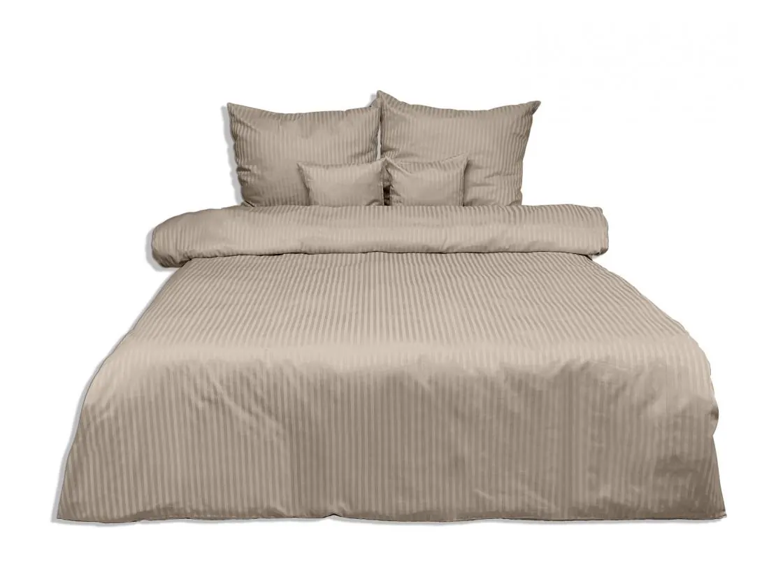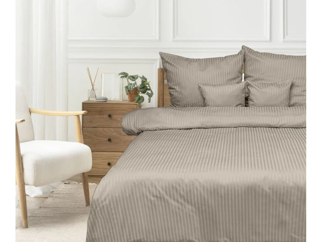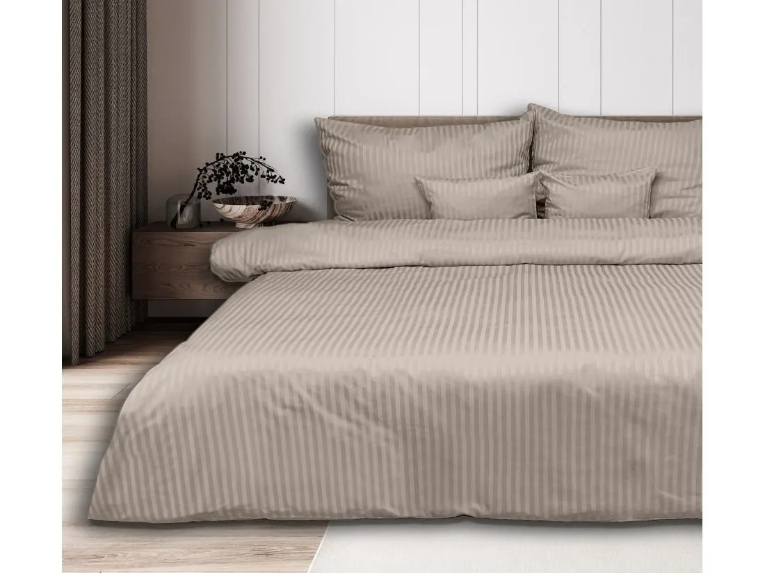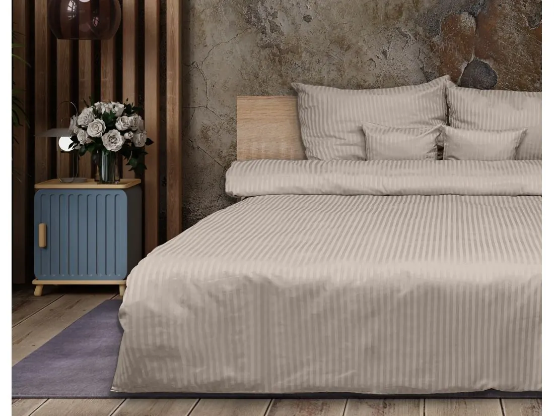 Adamaszek to tkanina znana ze swojego luksusowego charakteru i subtelnej elegancji. Charakteryzuje się ona delikatnym, miękkim połyskiem oraz gładką strukturą, co nadaje pościeli wyjątkowy wygląd. Pasek o szerokości 1 cm, który zdobi tę pościel, dodaje jej dodatkowego uroku, podkreślając jej wytworność i klasykę.