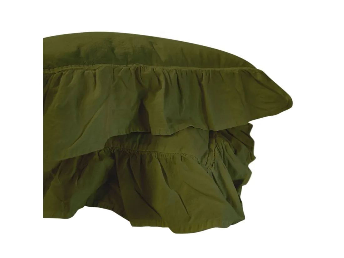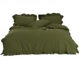 Pościel bawełniana 160x200 z falbanką olive Limasso w pudełku bez prasowania oliwkowy