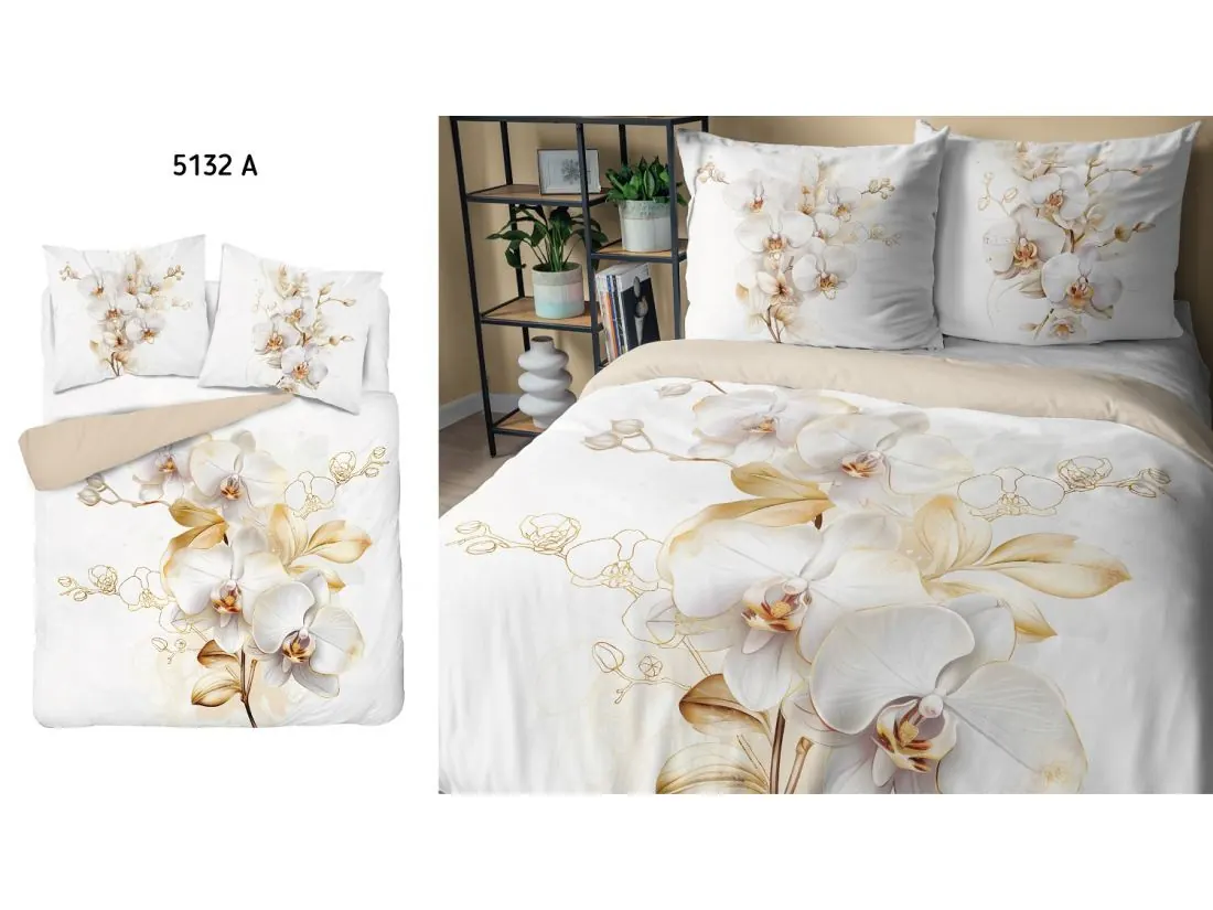 Pościel bawełniana 220x200 +2/70x80 białe storczyki holland collection holenderska 3D 5132 A