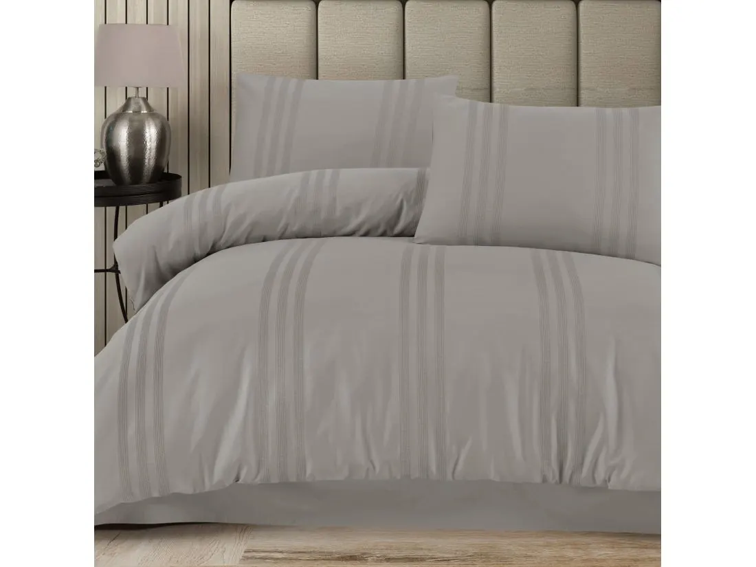 Pościel bawełniana jednobarwna 220x200+2/70x80 Melkor szare pasy żakardowe
