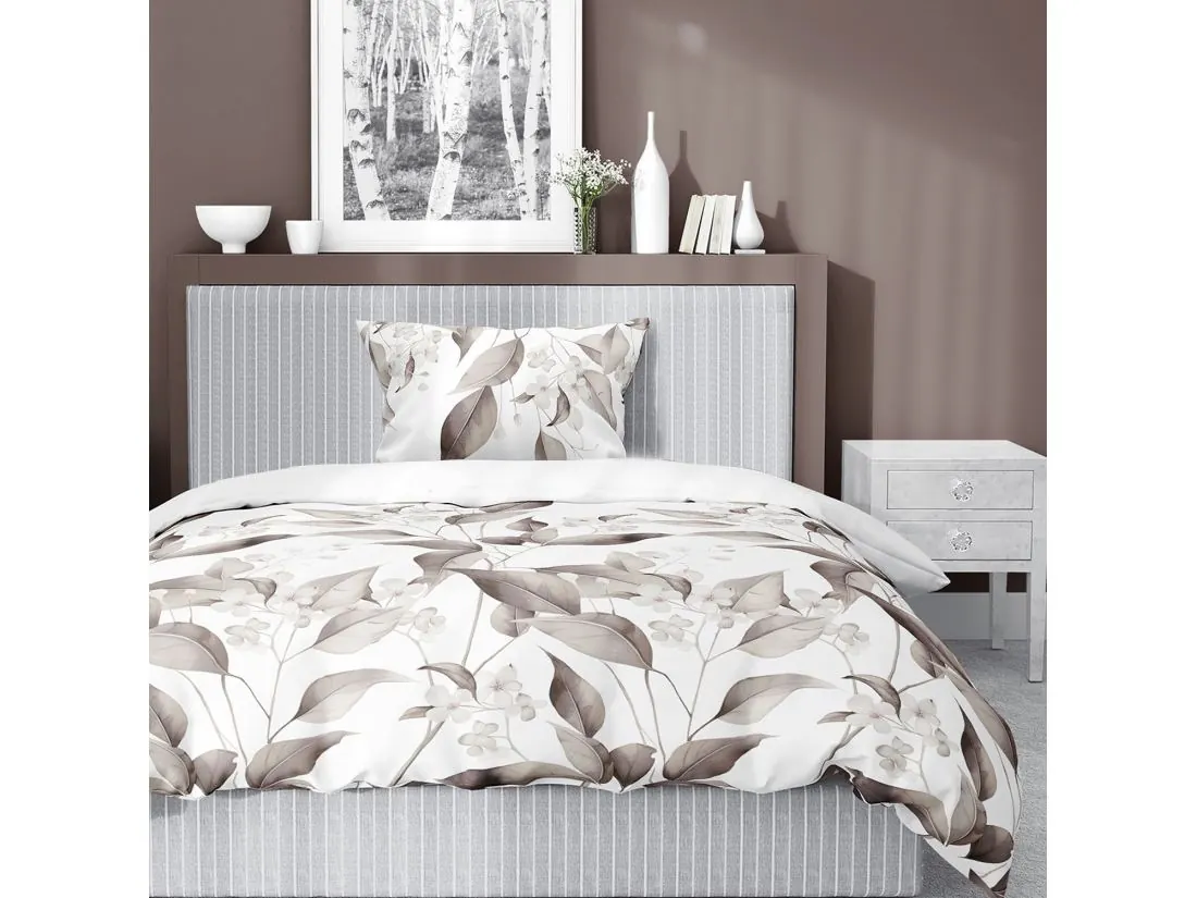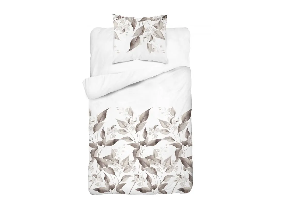 Pościel satynowa 140x200+1/70x80 brązowe liście wz. 5326 b detexpol