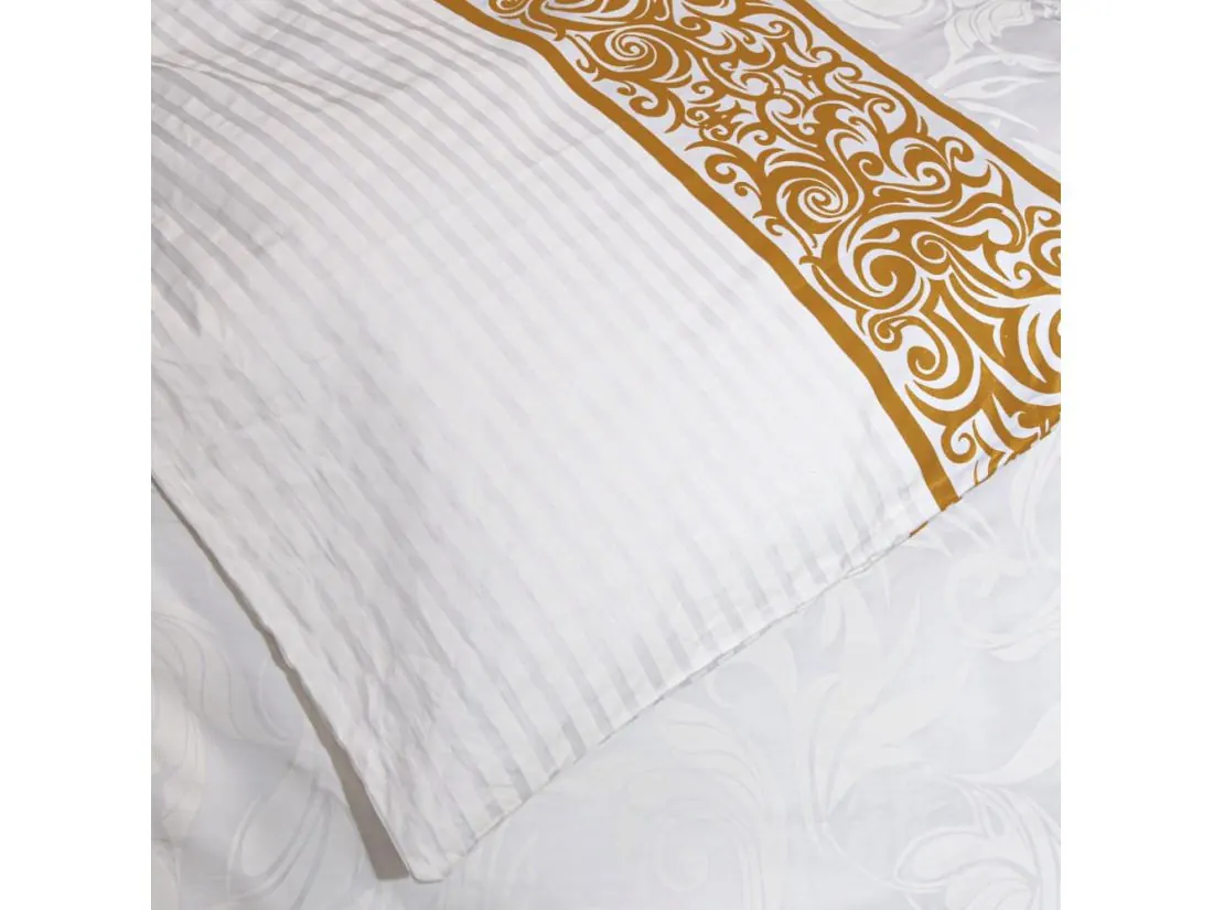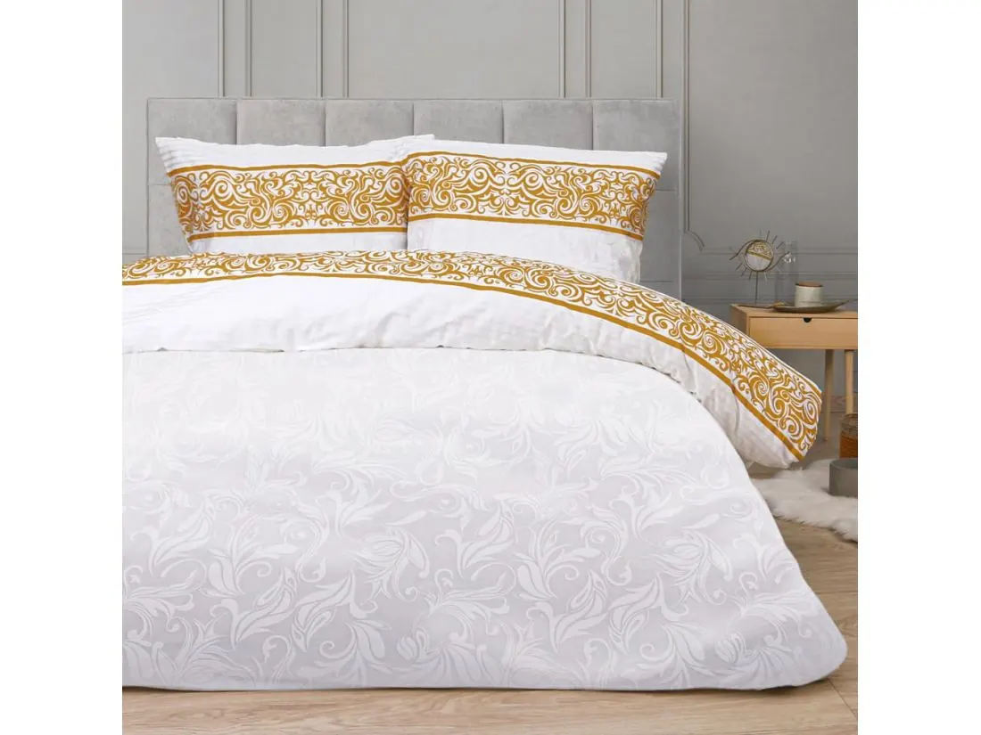 Pościel z satyny bawełnianej w rozmiarze 160x200 wzór 1514/1, została wykonana ze 100 % bawełny, barwienie pigmentowe, poddana procesowi merceryzacji i gładzenia (kalandrowania), w wyniku czego pościel jest miękka, miła oraz delikatna w dotyku. Delikatny miodowy wzór na biały tle na którym widoczne są fantazyjne wzorki oraz delikatne paseczki. Pościel intryguje i przyciąga wzrok,która nada niecodzienny charakter oraz wyjątkowy urok każdej sypialni, tak aby każda noc spędzona w pościeli była wyjątkowa.