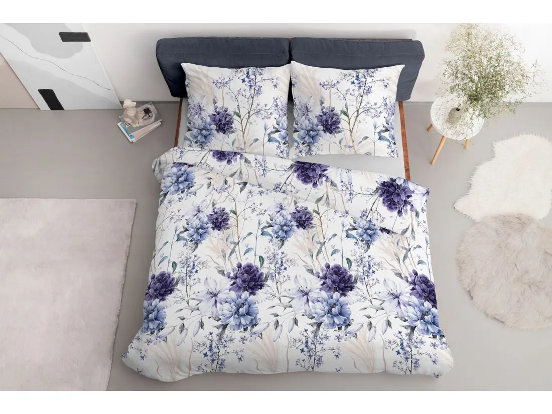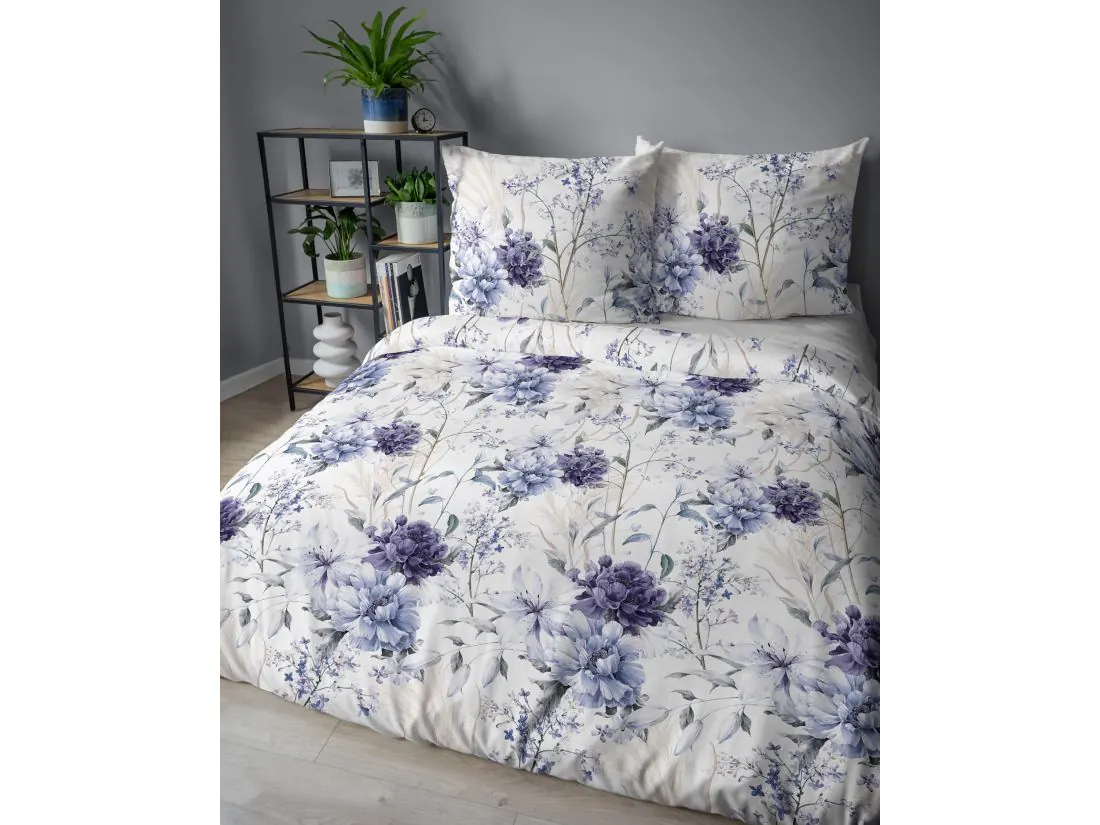 Pościel satynowa 160x200+2/70x80 fioletowe piwonie wz. 5222 a detexpol