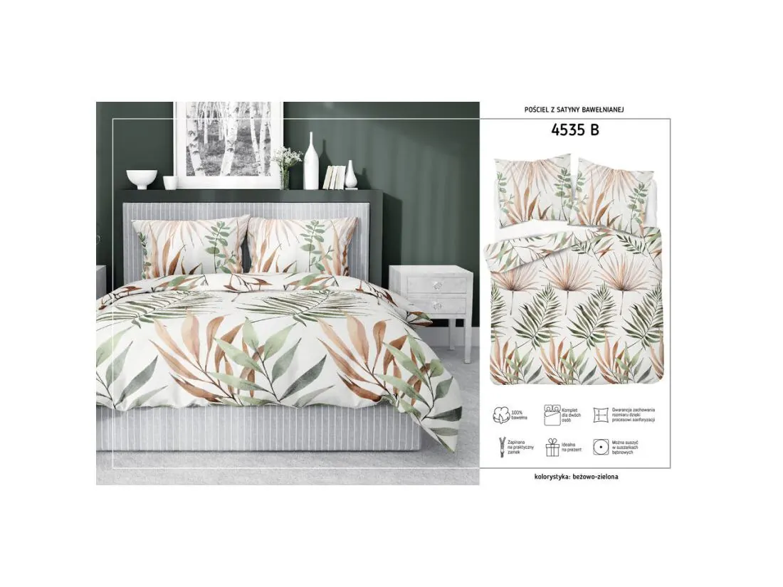 Pościel satynowa 160x200+2/70x80/ liście wz 4535 b