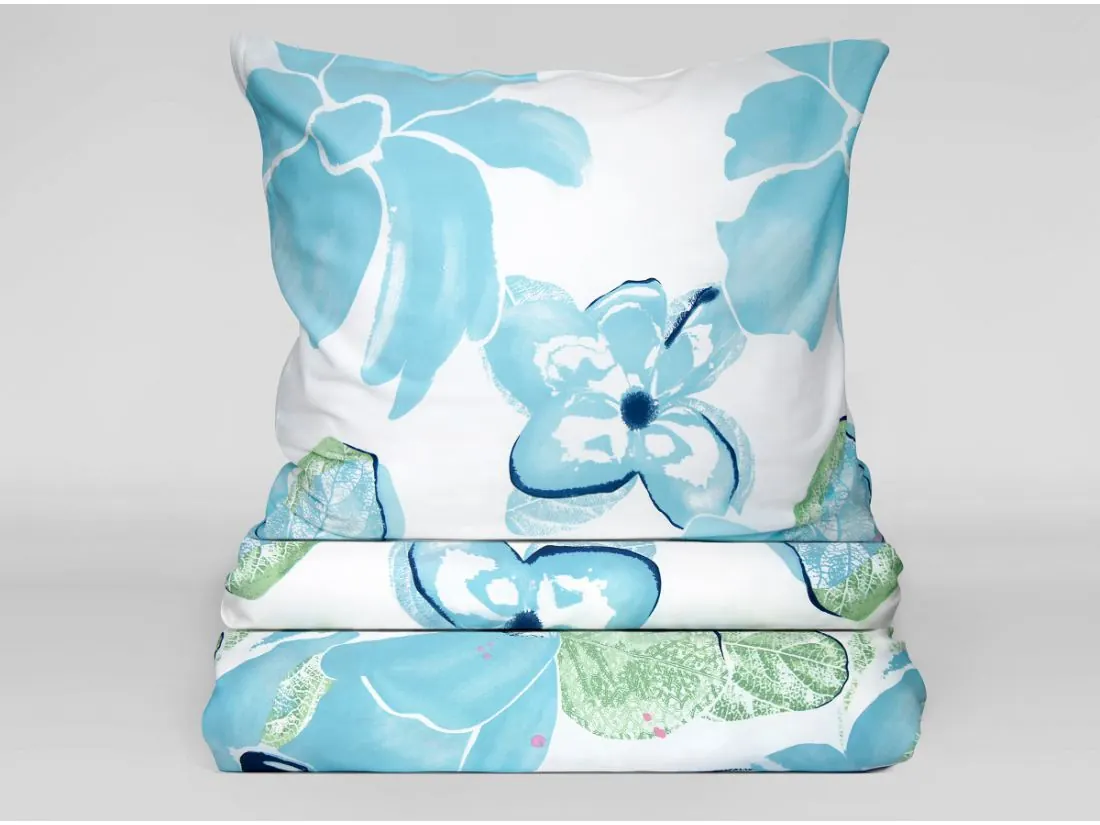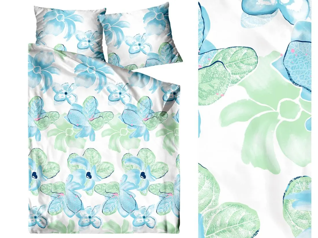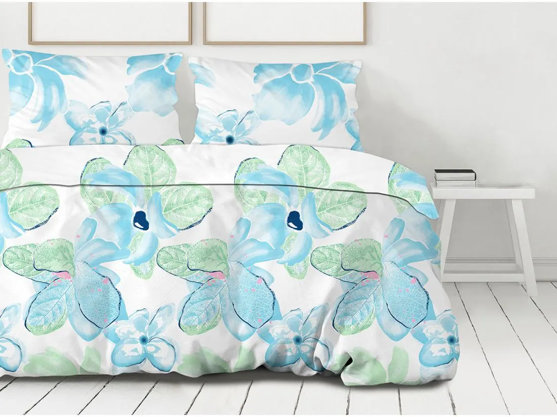 Pościel satynowa 160x200+2/70x80 saint tropez frotex niebieskie kwiaty