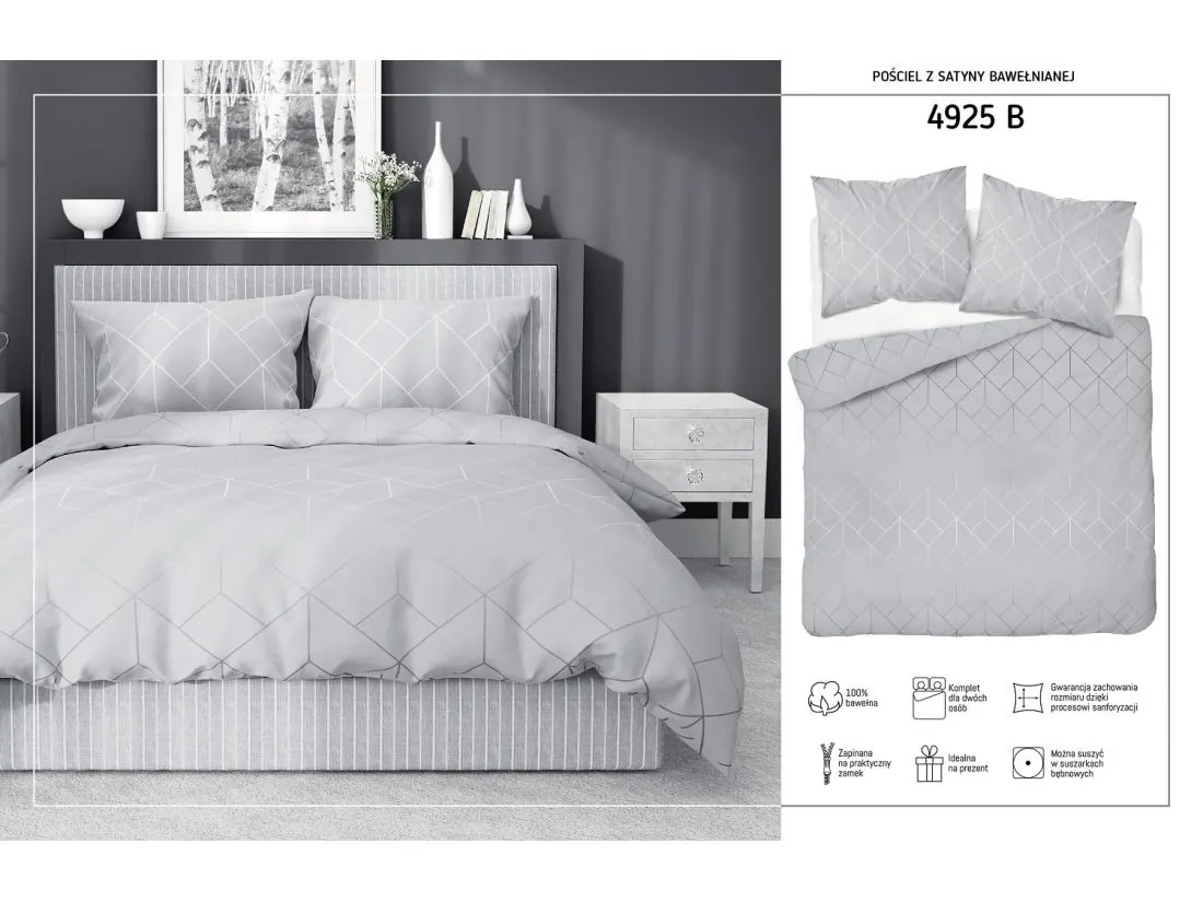 Pościel satynowa 160x200+2/70x80/ wzorzysta na szarym tle wz 4925 b detexpol