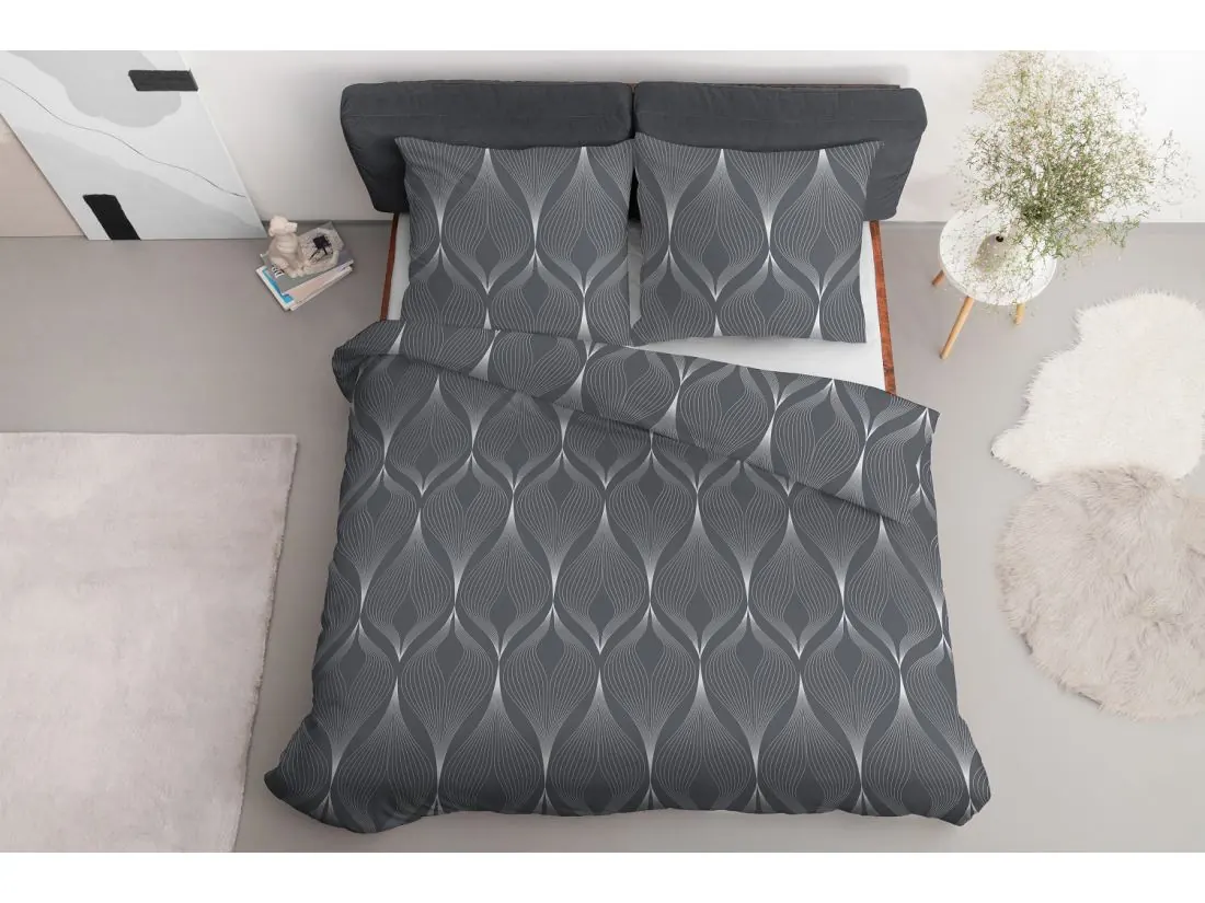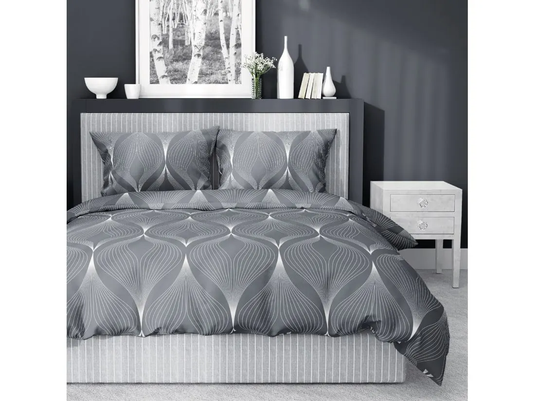 Pościel satynowa 220x200+2/70x80/ grafitowa spirala wz 4926 b detexpol