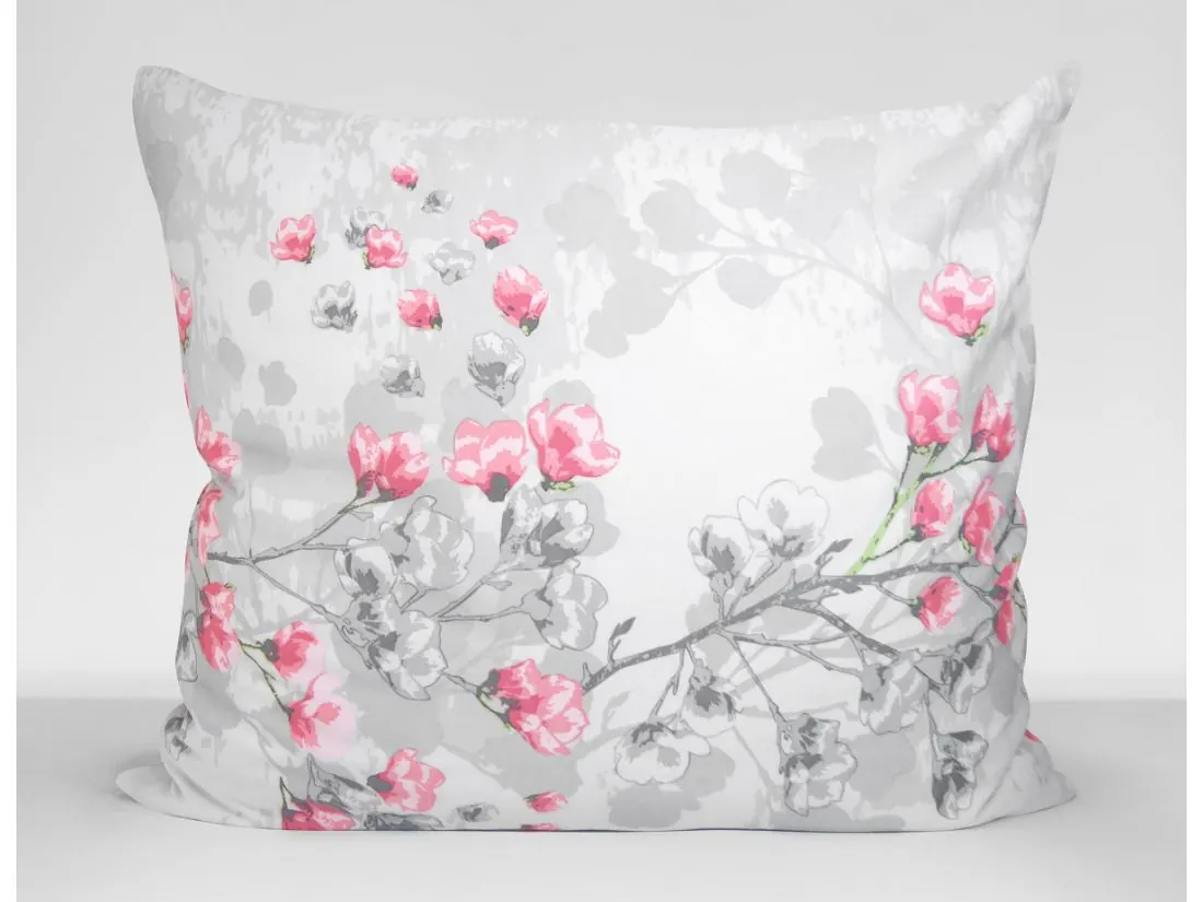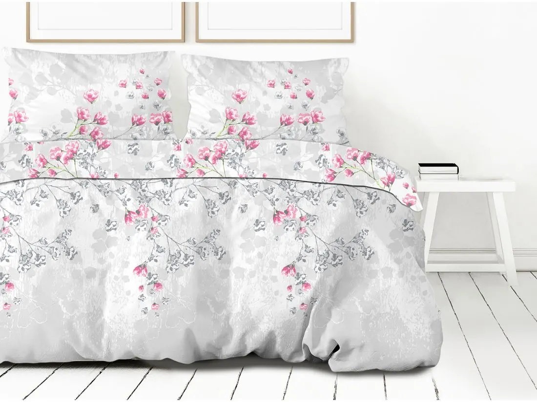Pościel satynowa 220x200+2/70x80 kyoto gray frotex kwiatuszki