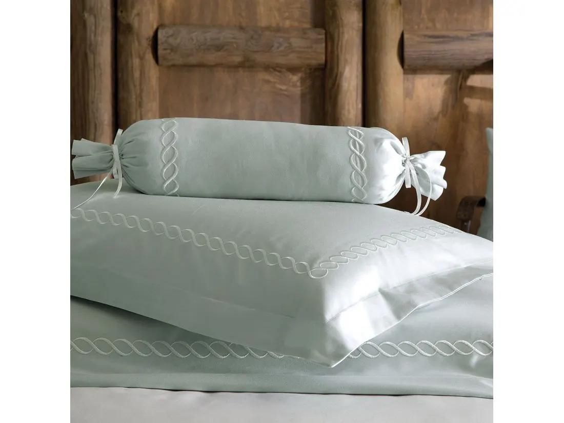 Pościel Haftowana 6 elementowa wzór Catena Green w rozmiarze 200 X 220 cm firmy TIVOLYO HOME z kolekcji Embroidery Satin, to ekskluzywna pościel dla każdego kto w swojej sypialni ceni luksus i elegancje.
