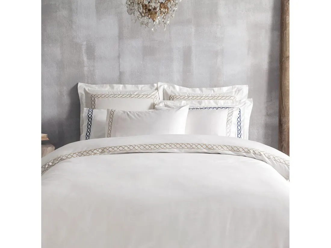 Pościel satynowa haftowana ekskluzywna Chain Beige 200x220 Tivolyo Embroidery Satin