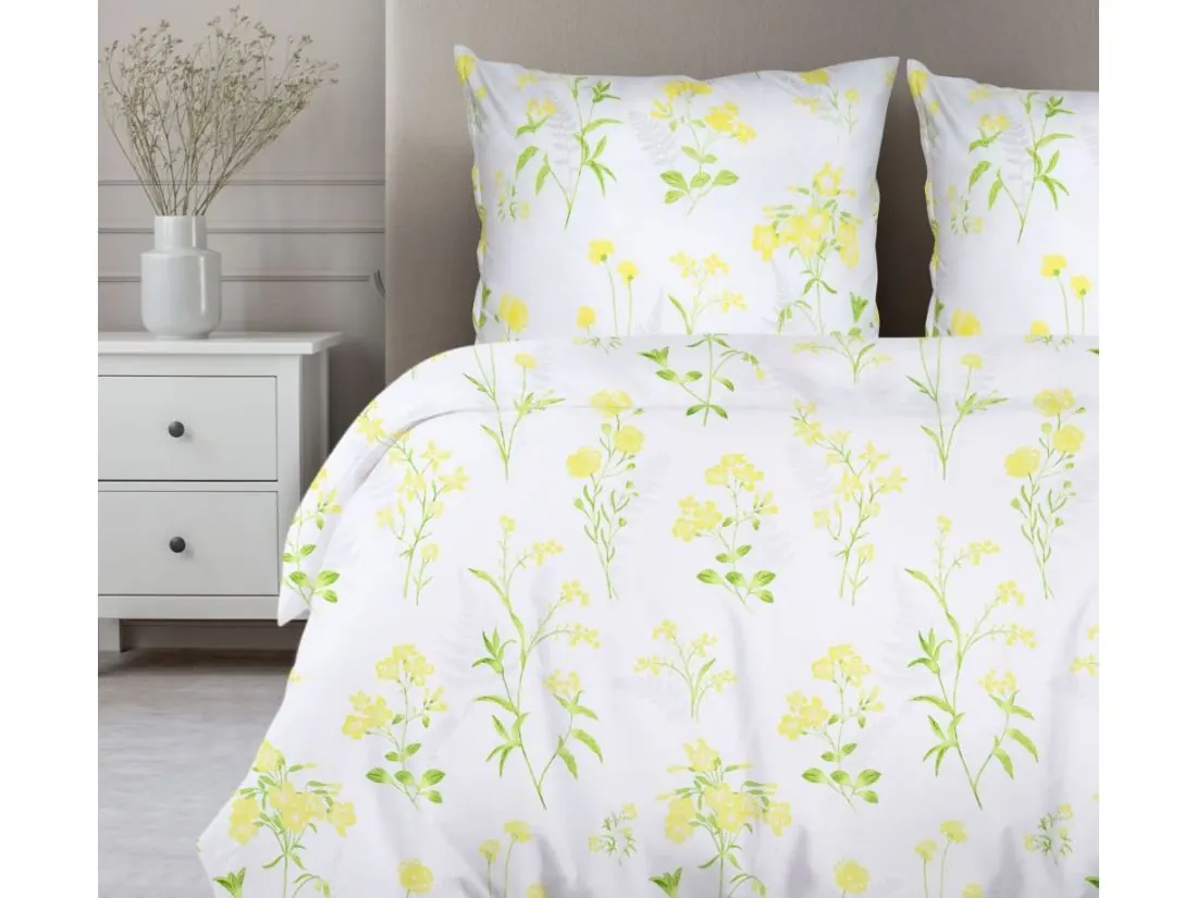 Pościel z bawełny 140x200 +1/70x80 Bratku Bielbaw Premium żółte bratki