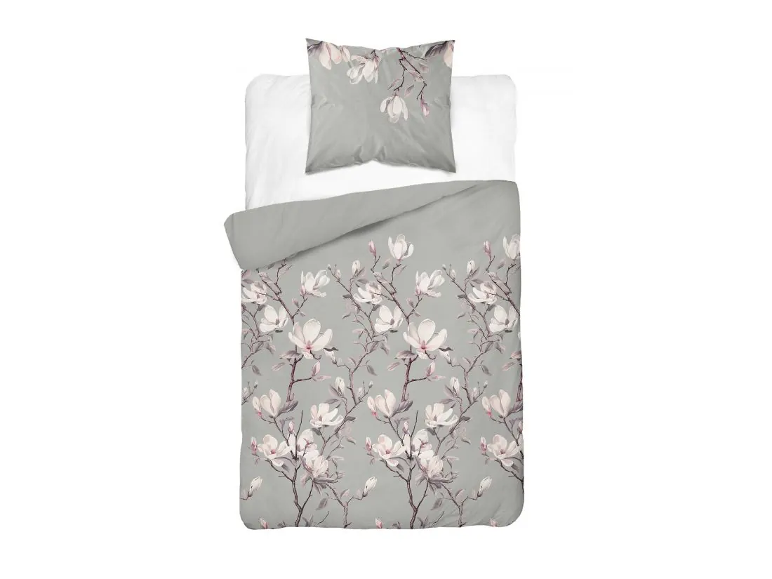 Pościel z bawełny 140x200 +1/70x80 magnolie na szarym tle wz. 5497 b