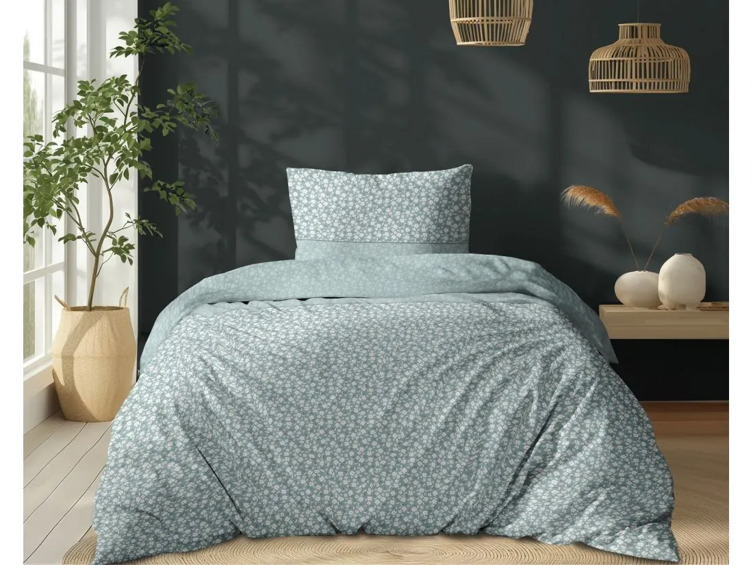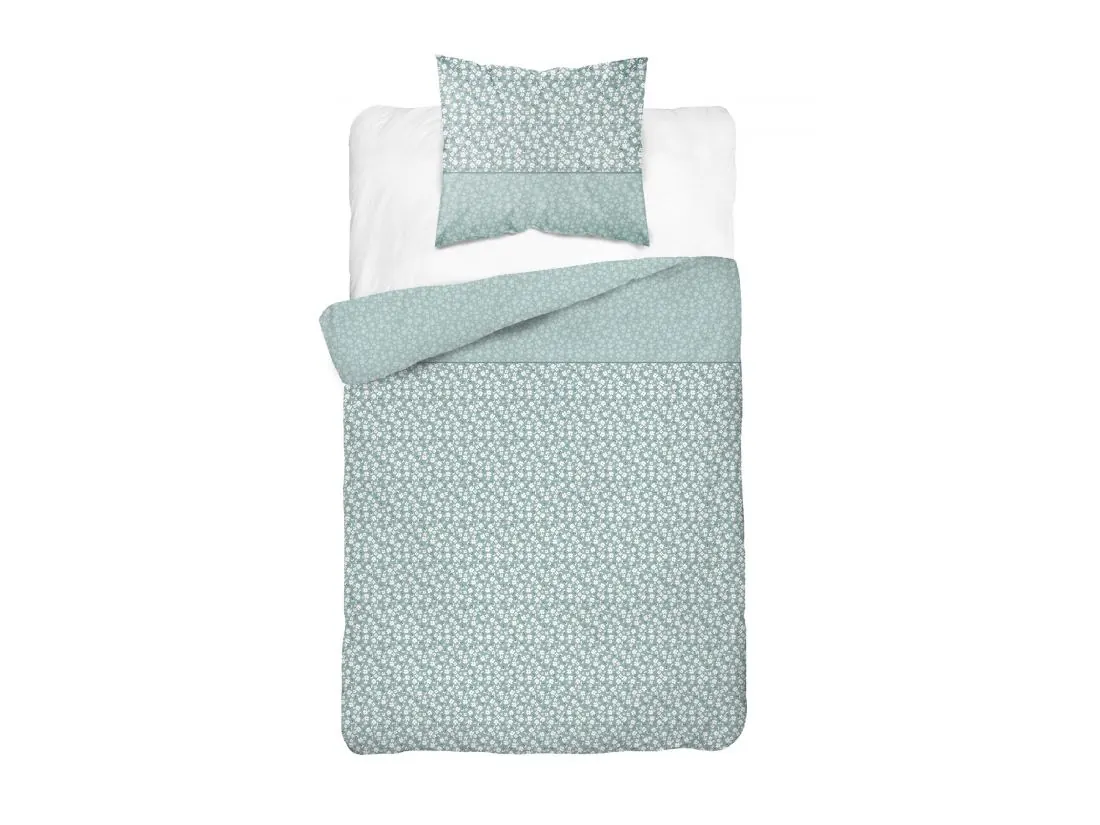 Pościel z bawełny 140x200 +1/70x80 miętowe kwiatuszki wz.5336 a
