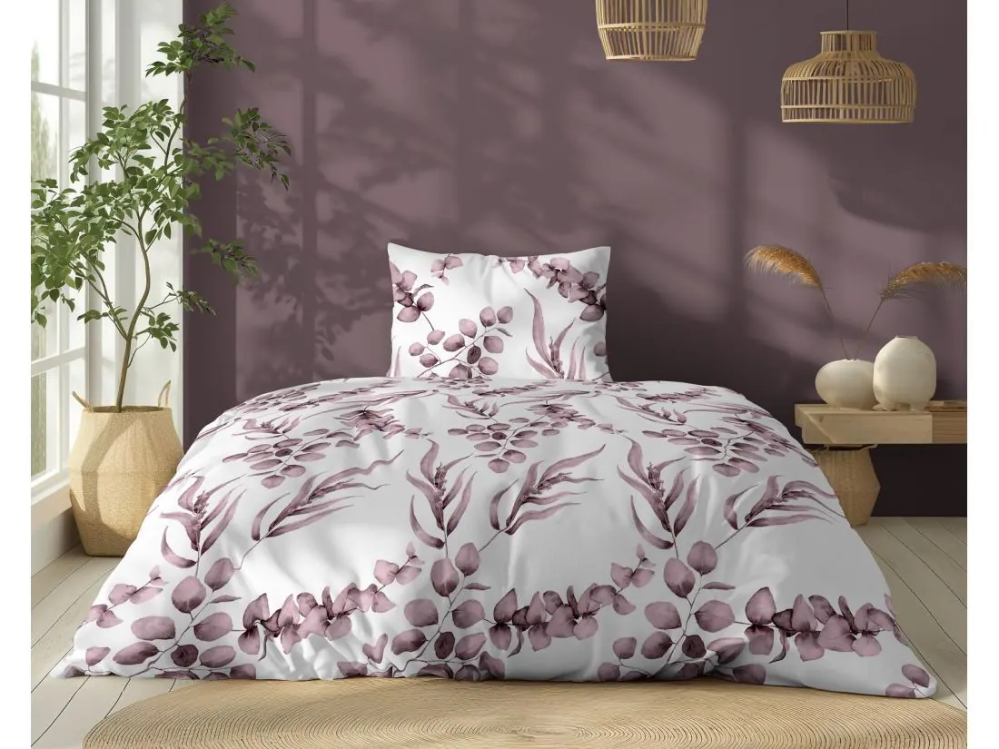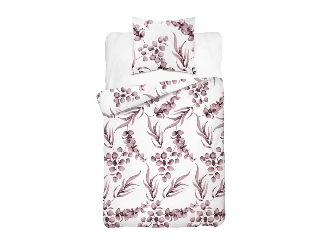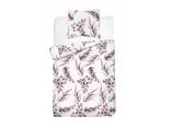 Pościel z bawełny 140x200 +1/70x80 pudrowe listki na białym tle wz. 5107 b
