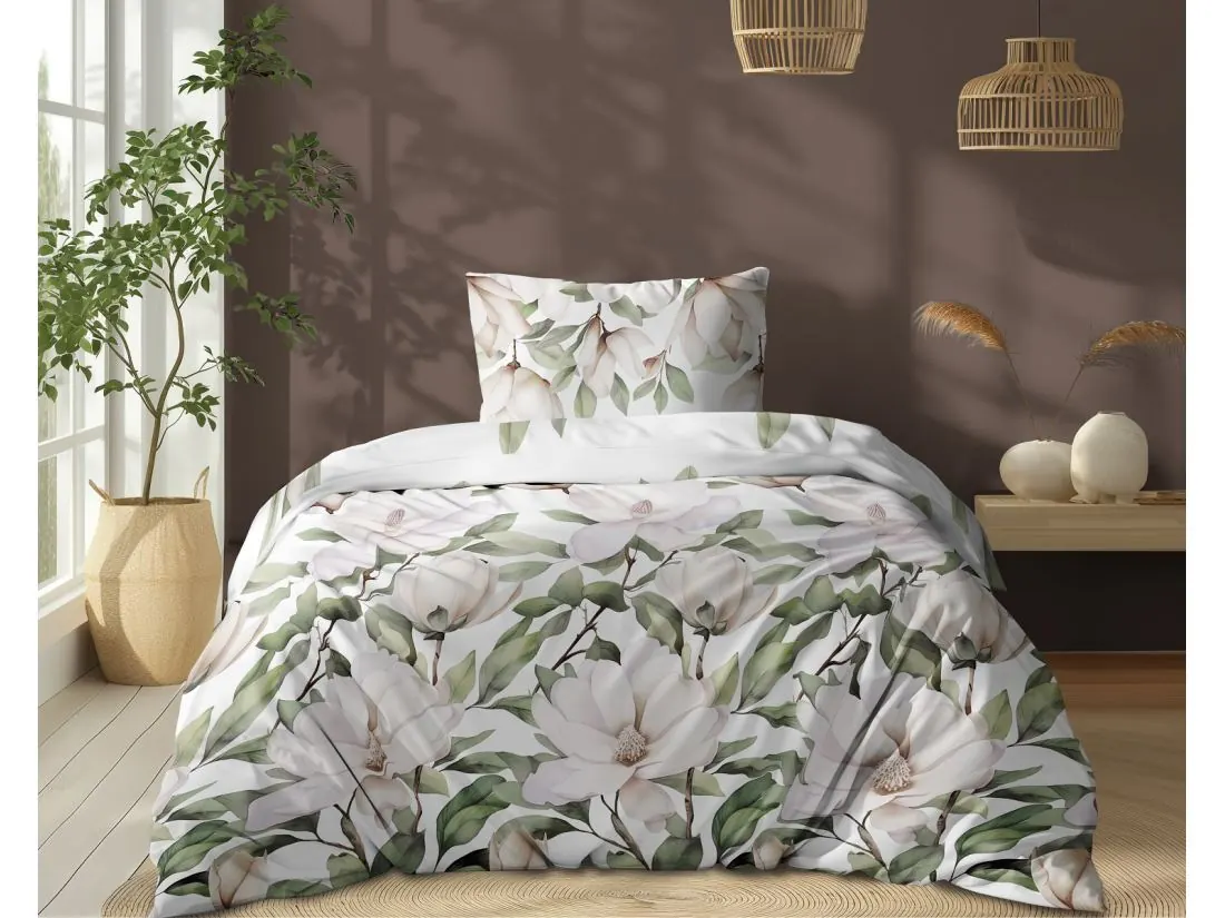 Pościel z bawełny 140x200 +1/70x80 zielony dotyk magnoli wz. 5505 b