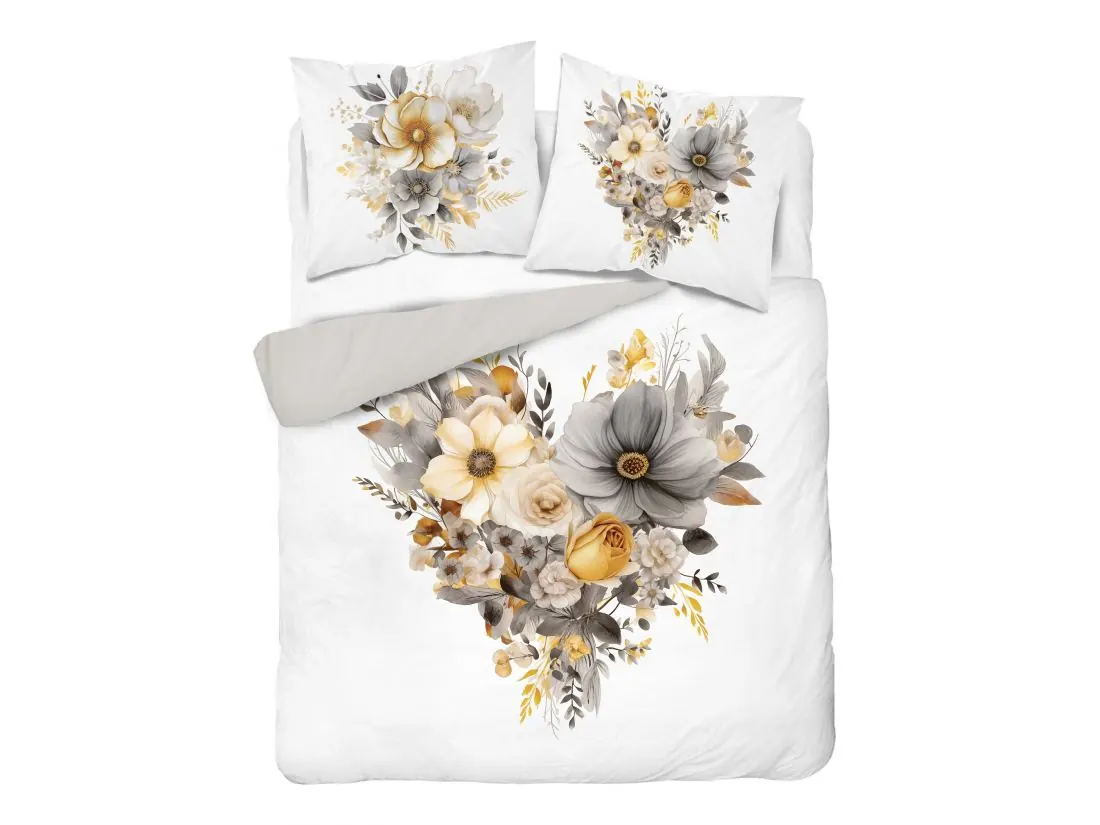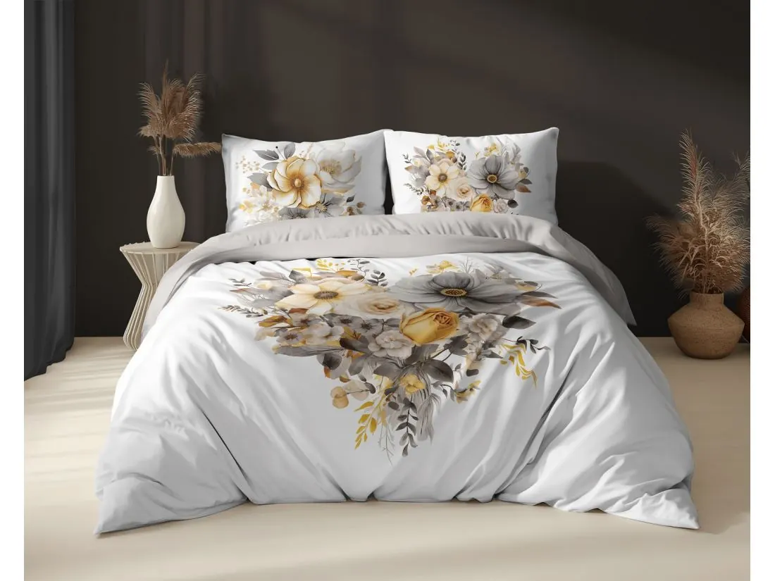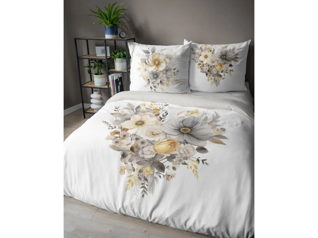 Pościel z bawełny 160x200 +2/70x80 bukiet kwiatów na jasnym tle holland collection holenderska 3D