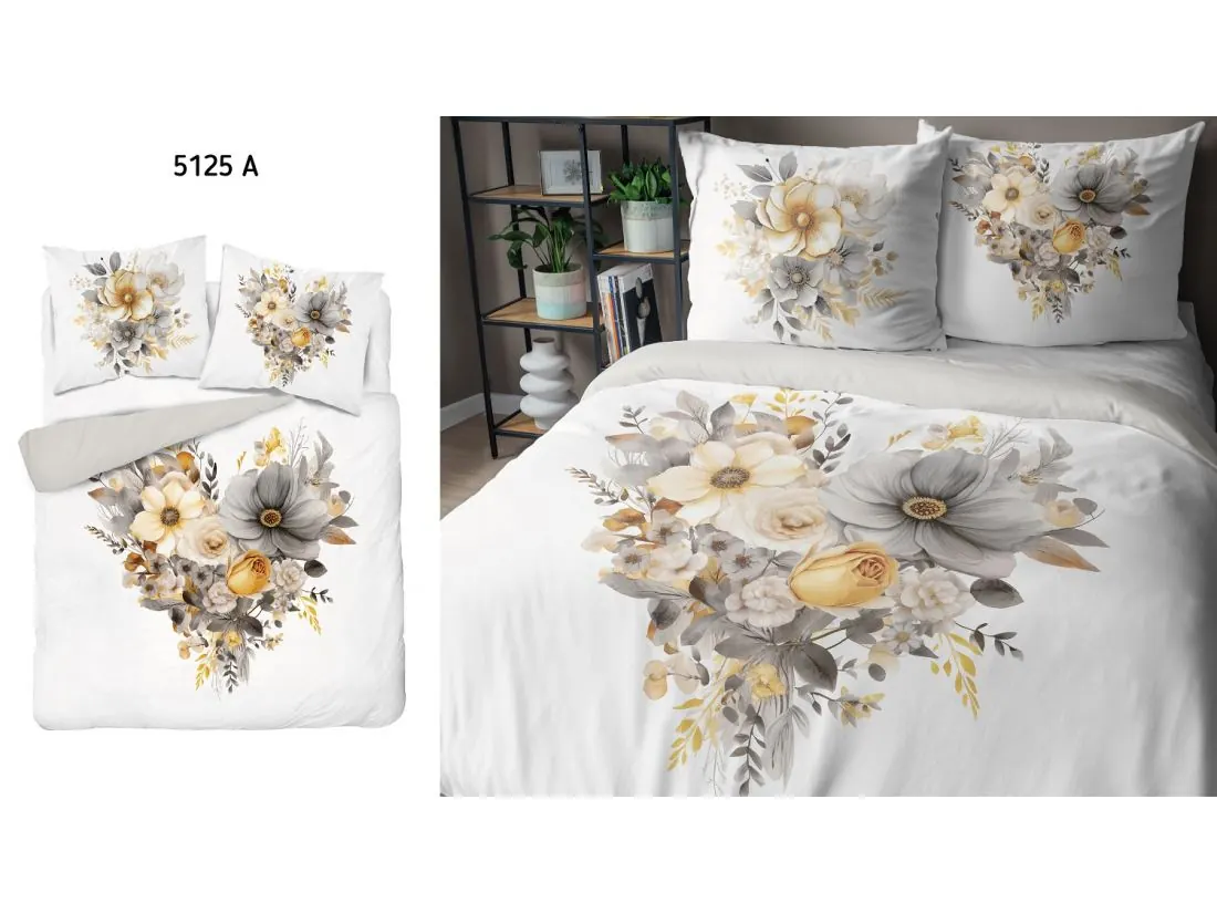 Pościel z bawełny 160x200 +2/70x80 bukiet kwiatów na jasnym tle holland collection holenderska 3D 5125 A