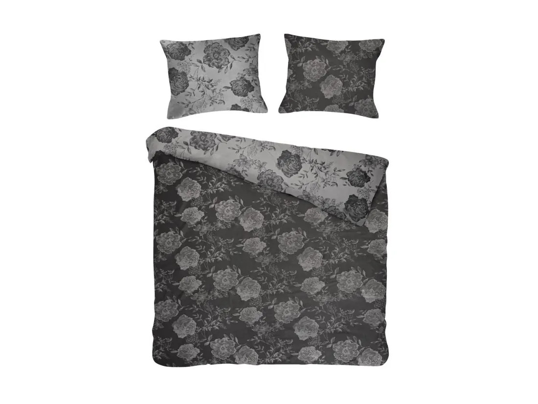 Pościel z bawełny 160x200 +2/70x80 flory dark grey cottonlove jacquard róża