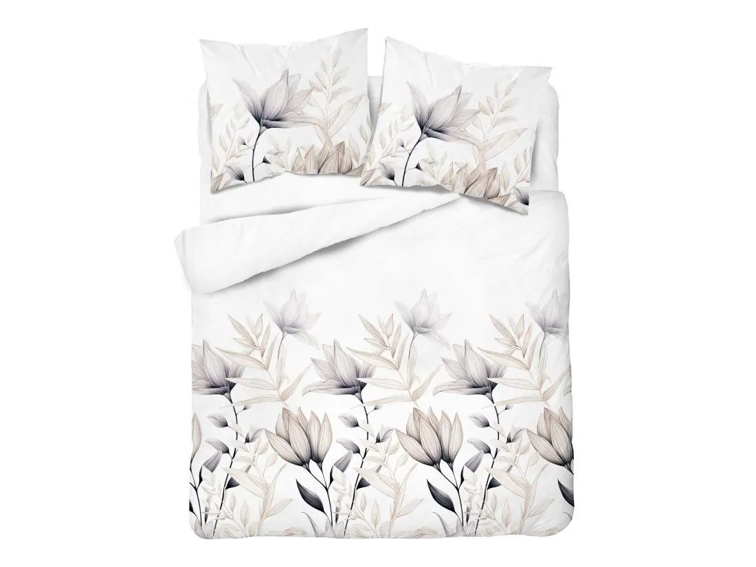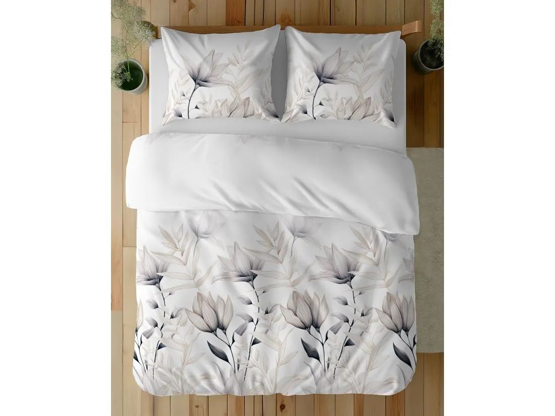 Pościel z bawełny 220x200 +2/70x80 beżowe kwiaty wz. 5494 a