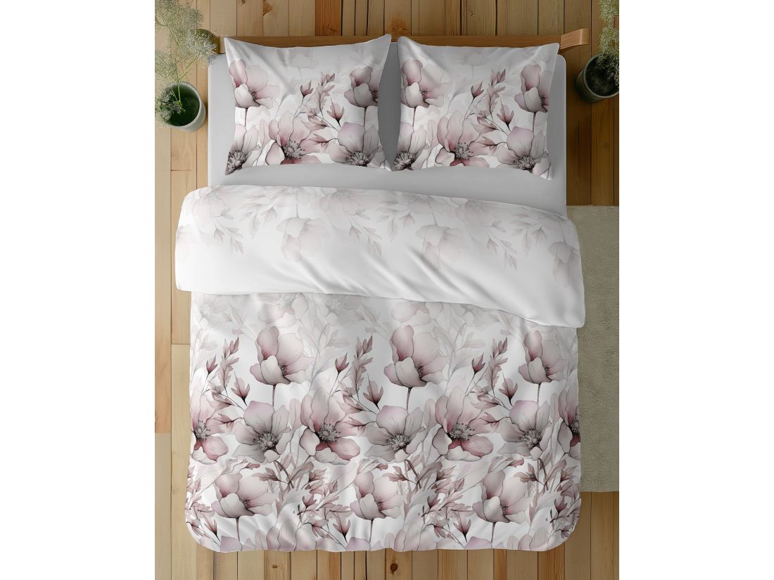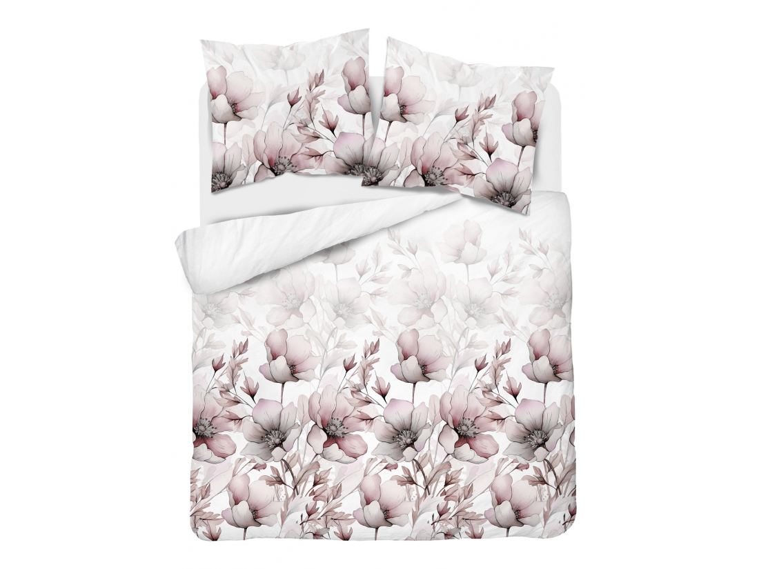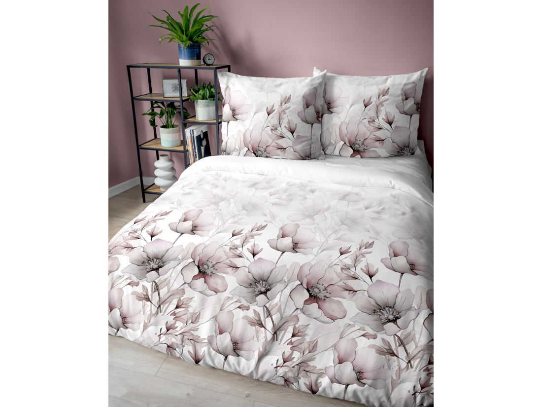 Pościel z bawełny 220x200 +2/70x80 duże beżowe kwiaty wz. 5114 b