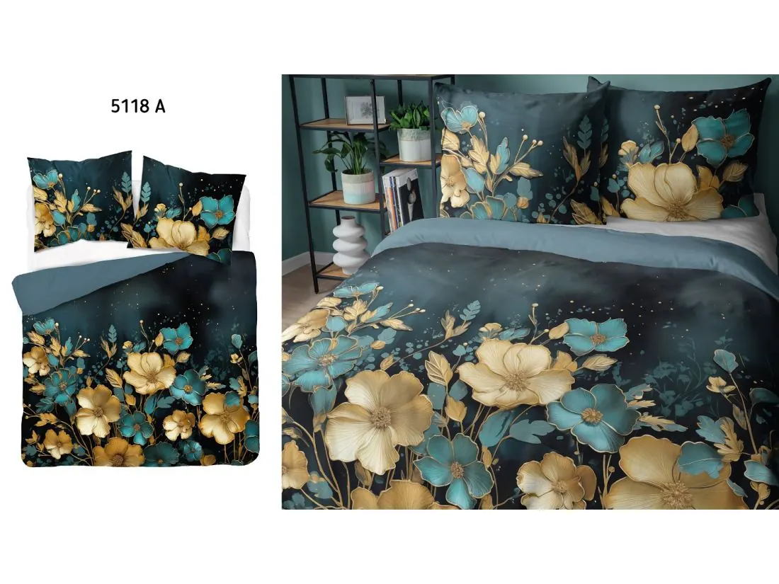 Pościel z bawełny 220x200 +2/70x80 złoty, turkusowy zawilec holland collection holenderska 3D 5118 A