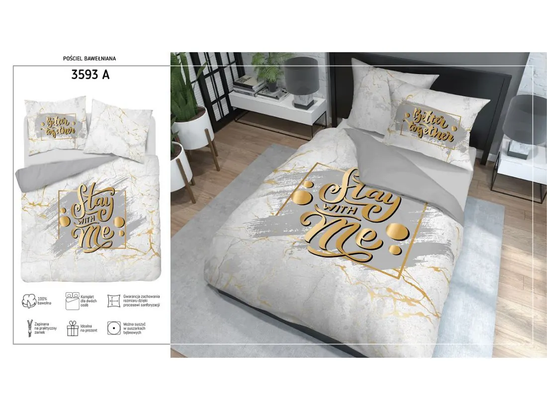 Wymiary: | poszwa - 220×200 cm szer/dł 2 poszewki na poduszkę - 70×80 cm |
