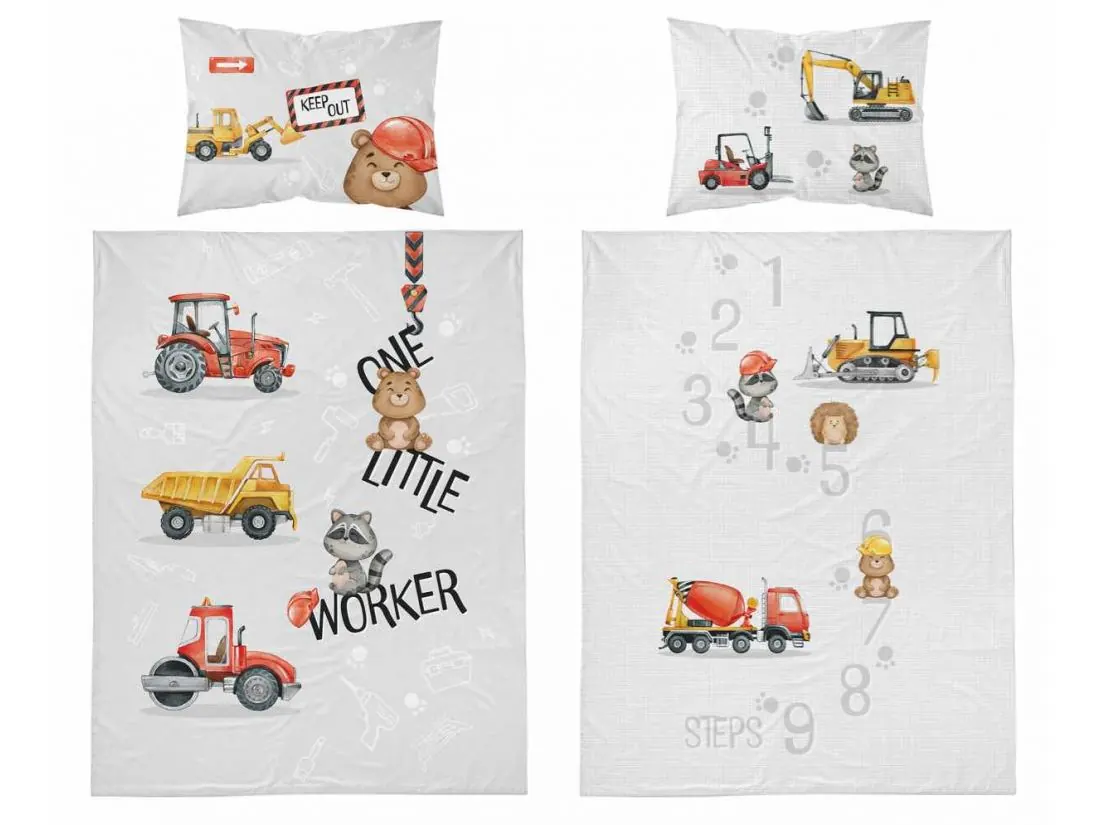 Pościel z bawełny 90x120 + 40x60 pracowite zwierzątka dla dzieci do łóżeczka 4993 a szary